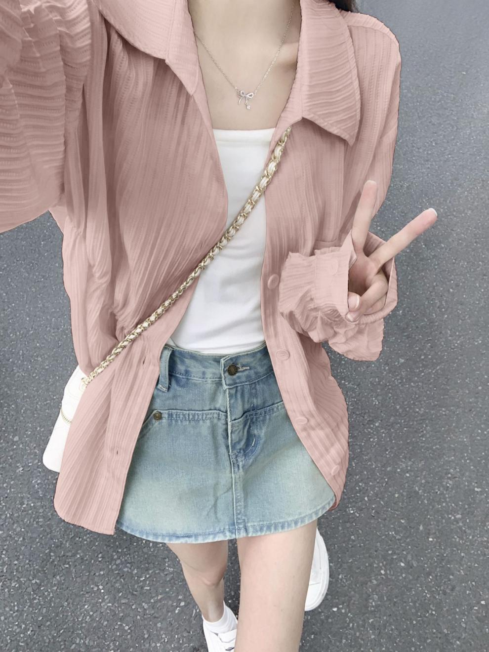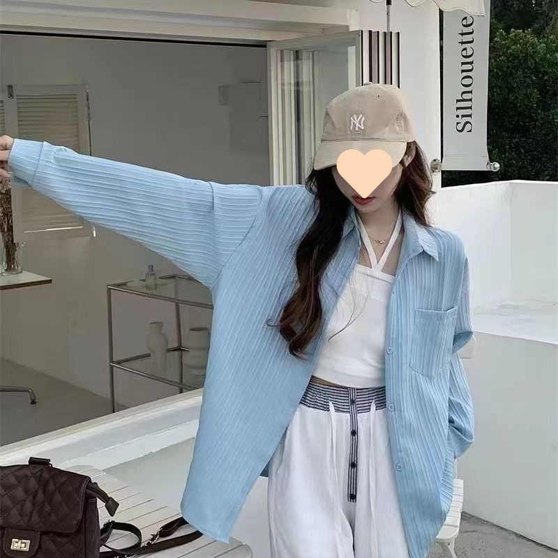 셔츠 탑 디자인 감각 여성 틈새 2025 새로운 여름 얇은 셔츠 코트 여성의 태양 보호 카디건 외부 착용스토어 가기