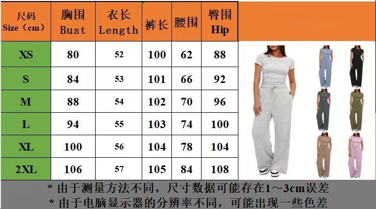 2025 유럽 및 미국 무역 아마존 여성용 투피스 캐주얼 세트 주름 장식 패션 반팔 상의 와이드 팬츠스토어 가기