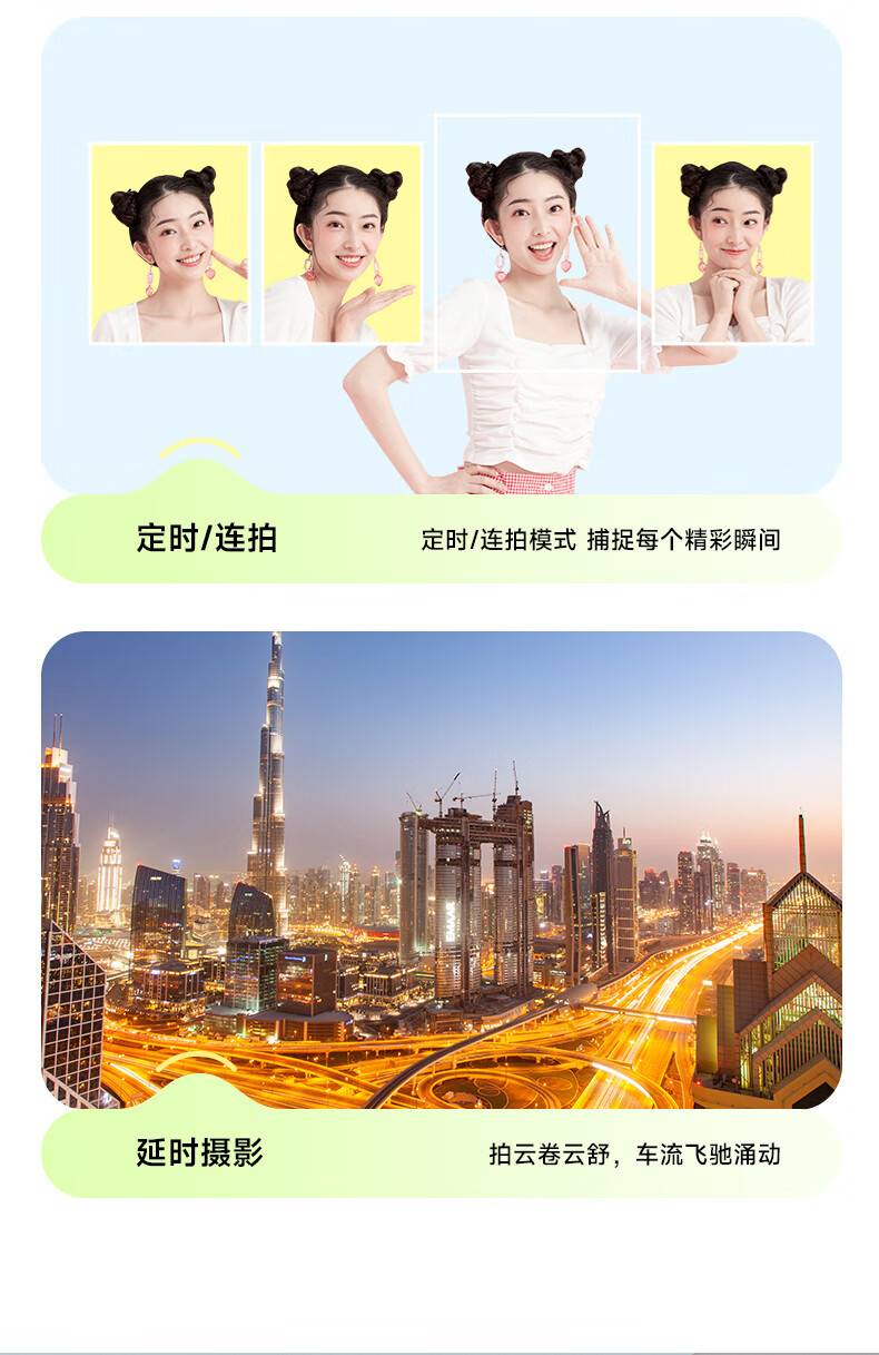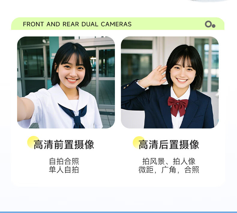 • 그린 + 전면 및 후면 듀얼 카메라 + 전용 32G 고속 카드