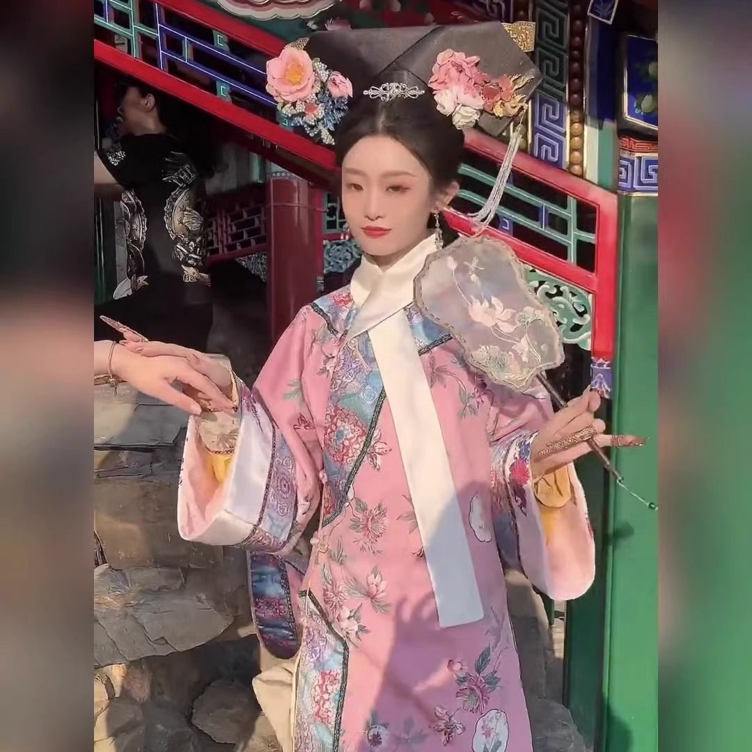 고대 의상 청삼 청나라 여성 의류 한푸 청나라 국기 세트 Gege 의류 인쇄 국가 스타일 새로운 중국 법원 스타일 한푸스토어 가기