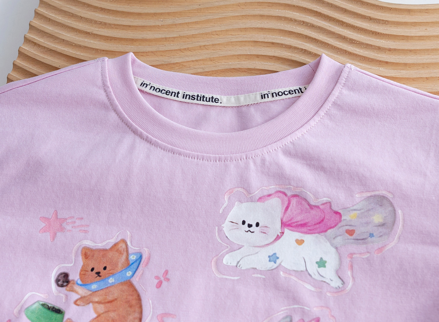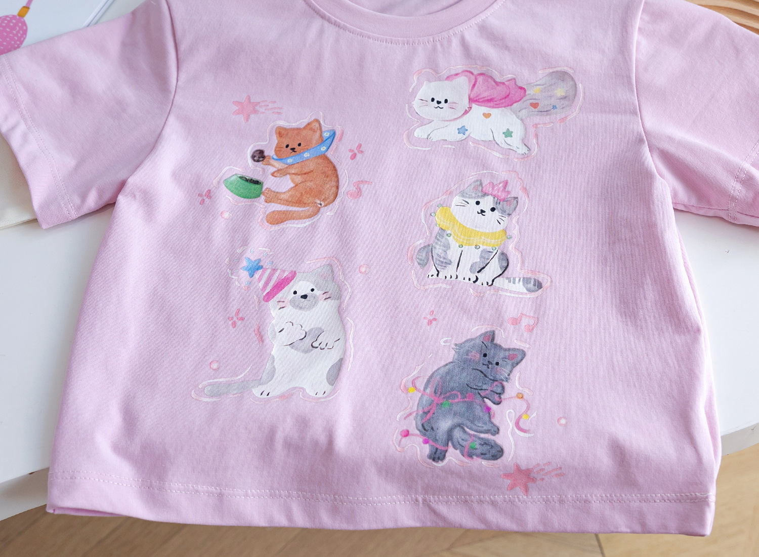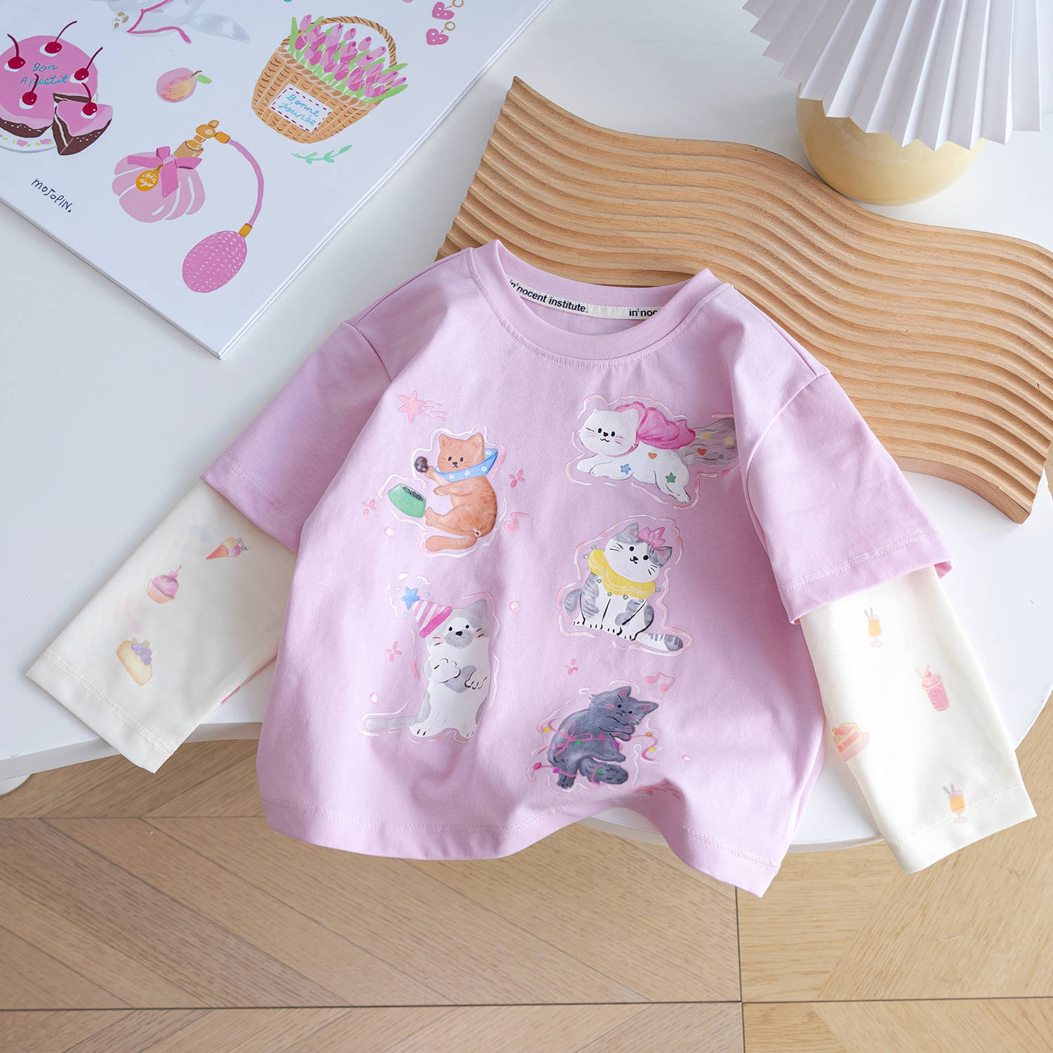 여자 봄 귀여운 만화 고양이 티셔츠 2025 새로운 한국 둥근 목 바느질 긴 소매 올매치 베이스 셔츠스토어 가기
