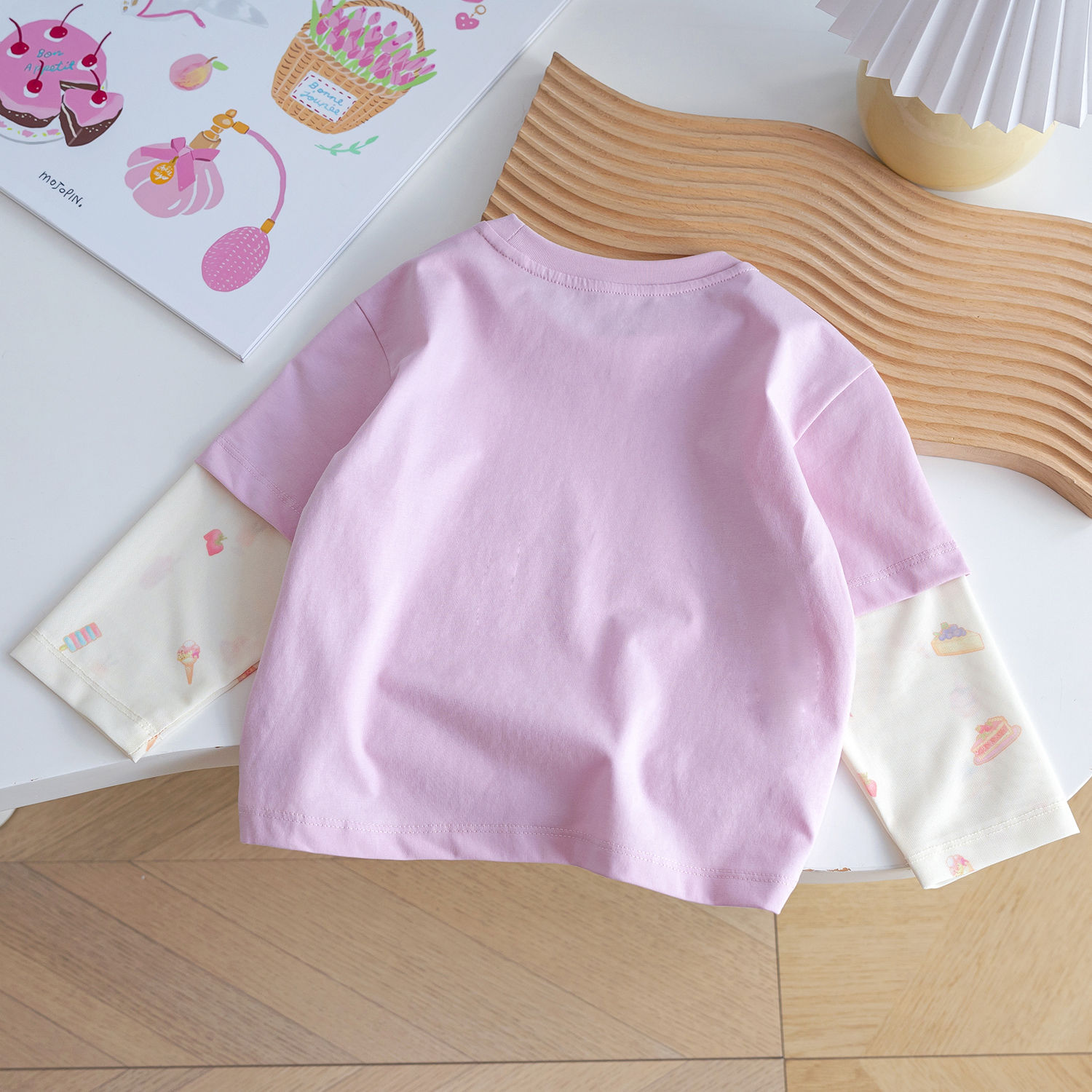 여자 봄 귀여운 만화 고양이 티셔츠 2025 새로운 한국 둥근 목 바느질 긴 소매 올매치 베이스 셔츠