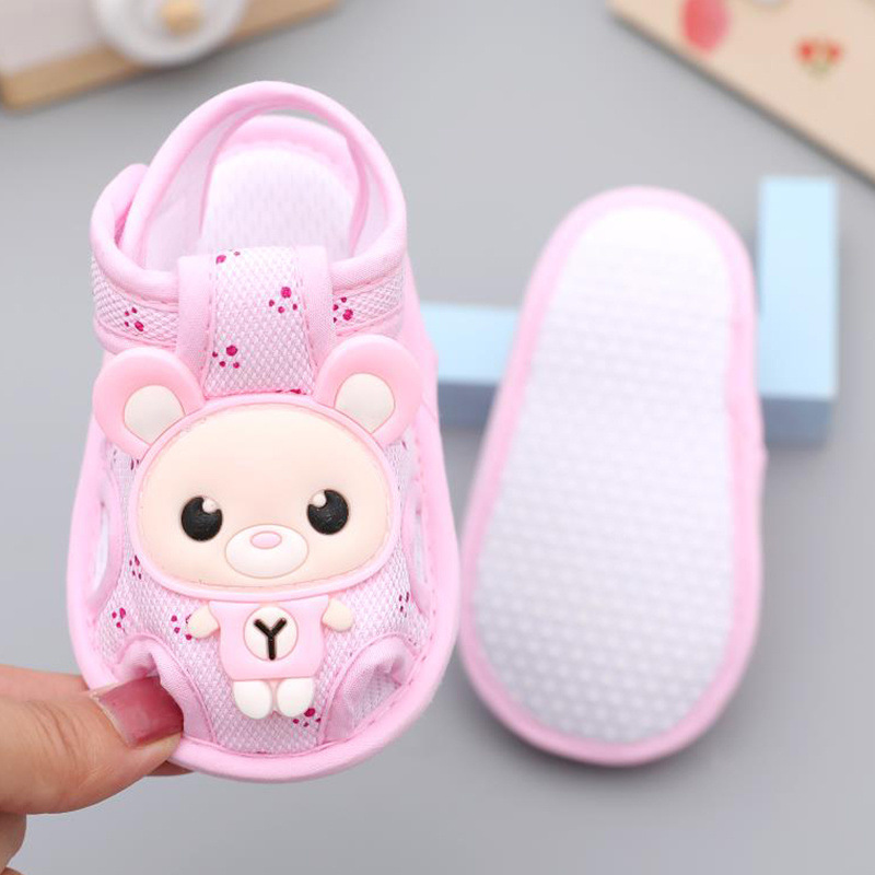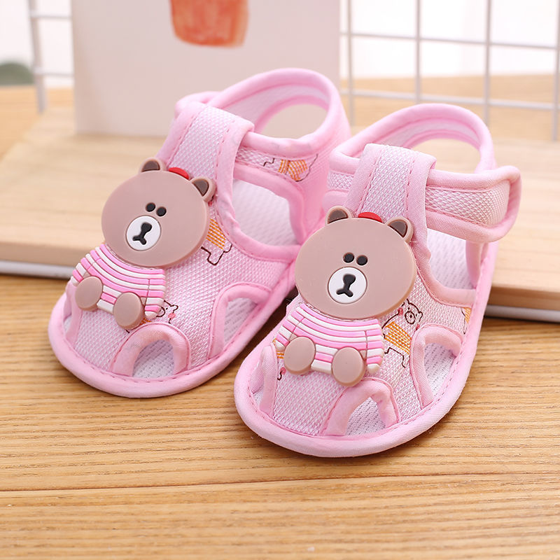 • 귀여운 곰돌이 핑크 컬러의 천 밑창 샌들