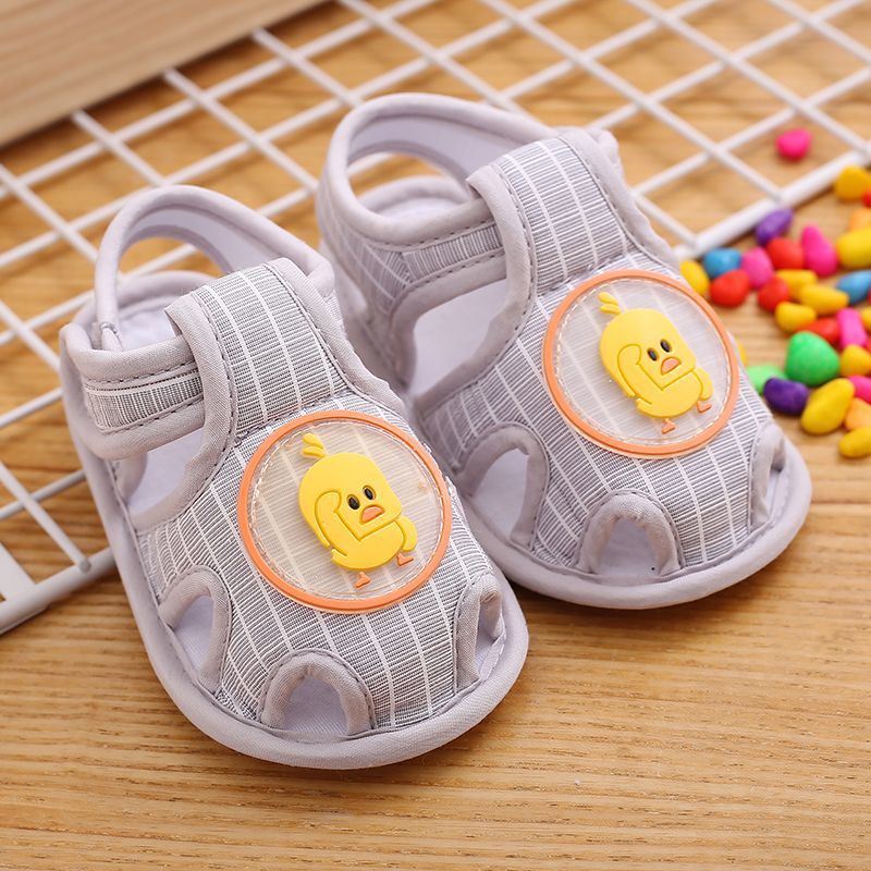 • 천 밑창 샌들 작은 노란색 오리 회색