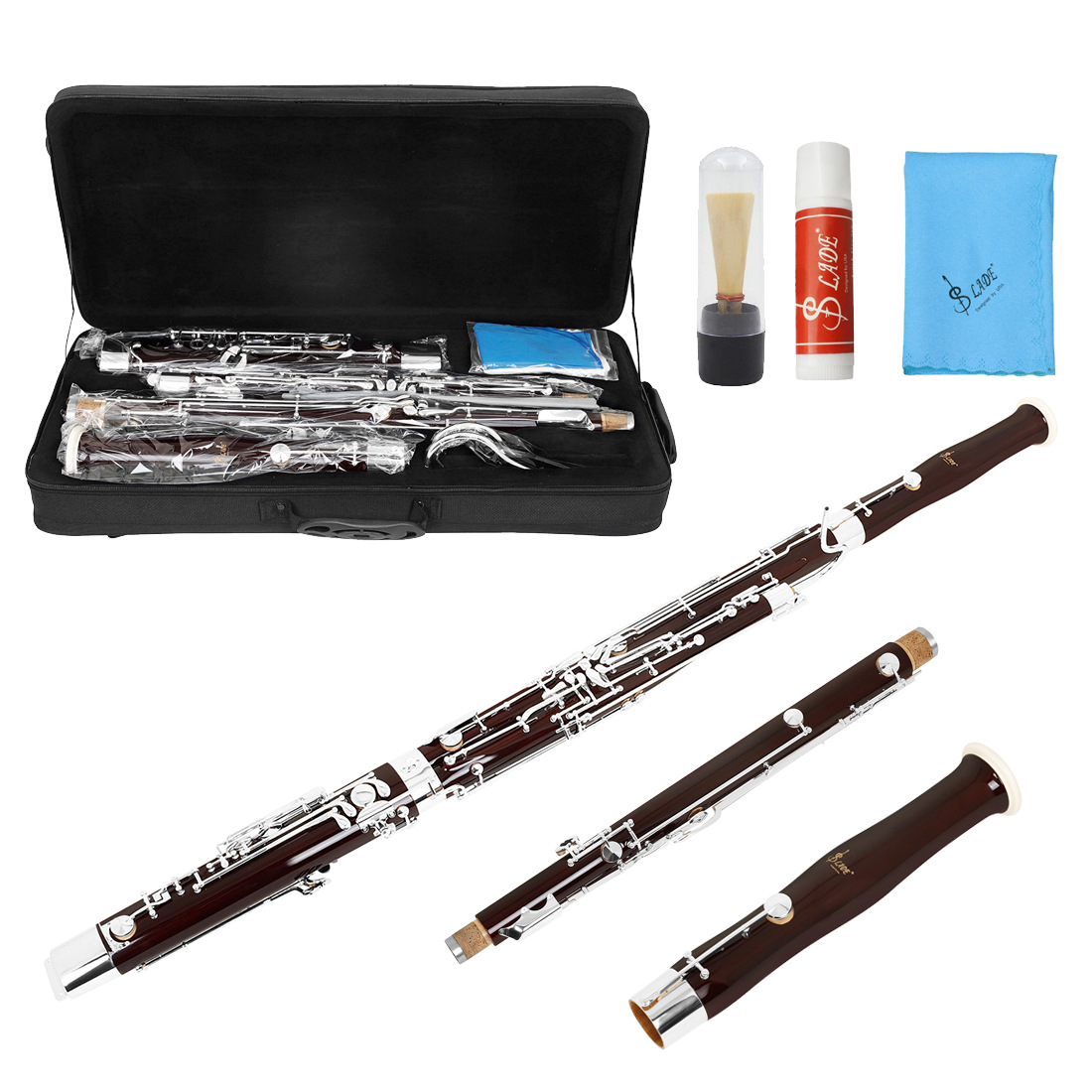 包装清单:巴松*1吹气管*2手套*2擦布*2箱包*1哨片*1软木膏*1