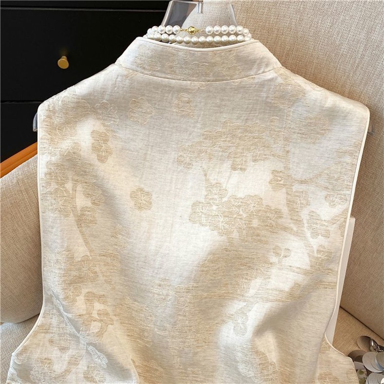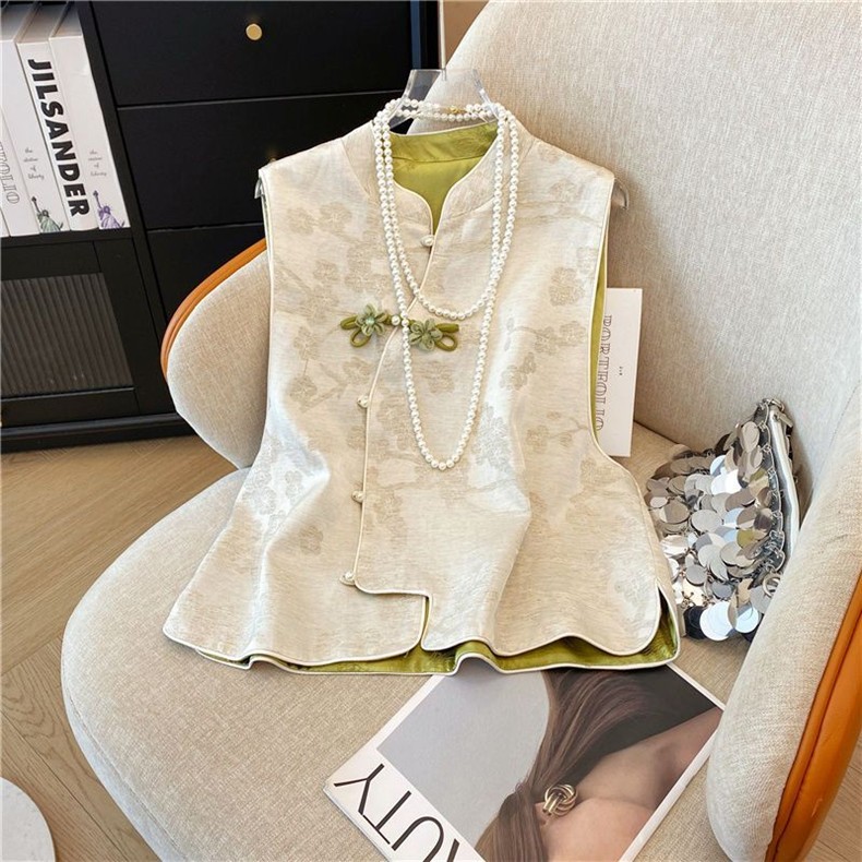 2025 새로운 이른 봄 우아한 자카드 크루 넥 하이 엔드 내셔널 스타일 탑 중국 스타일 여성을위한 새로운 중국 스타일 조끼 슈퍼 불멸스토어 가기