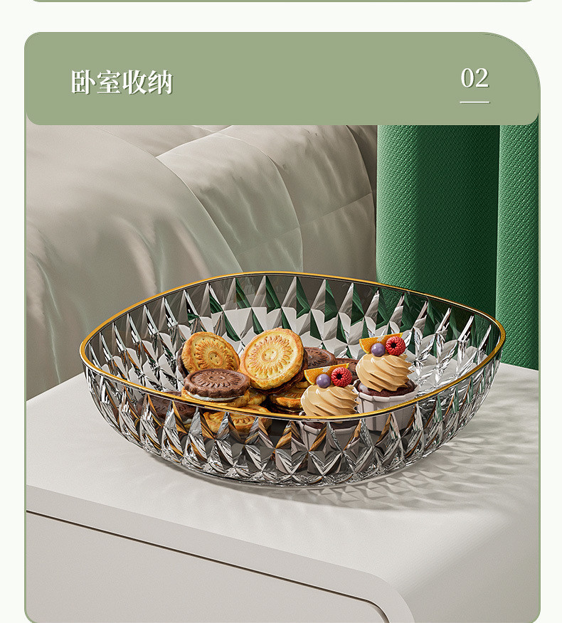 디자인 과일 접시 거실 고급 홈 커피 테이블 투명 과일 접시 스낵 말린 과일 접시 2024 새로운 과일 접시