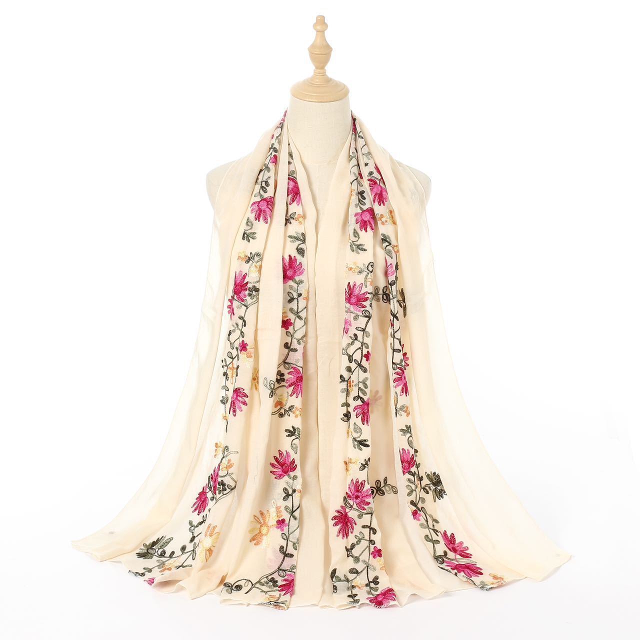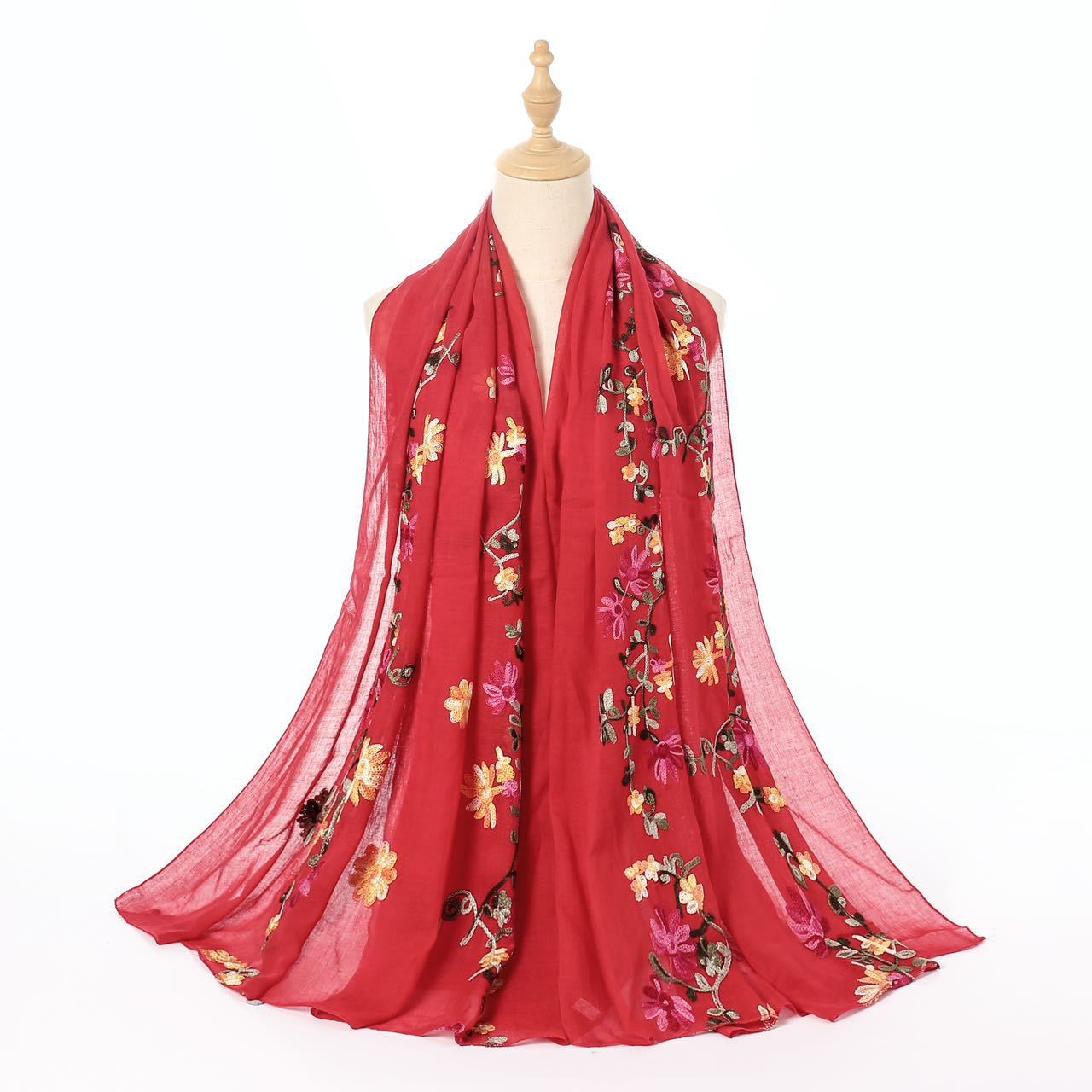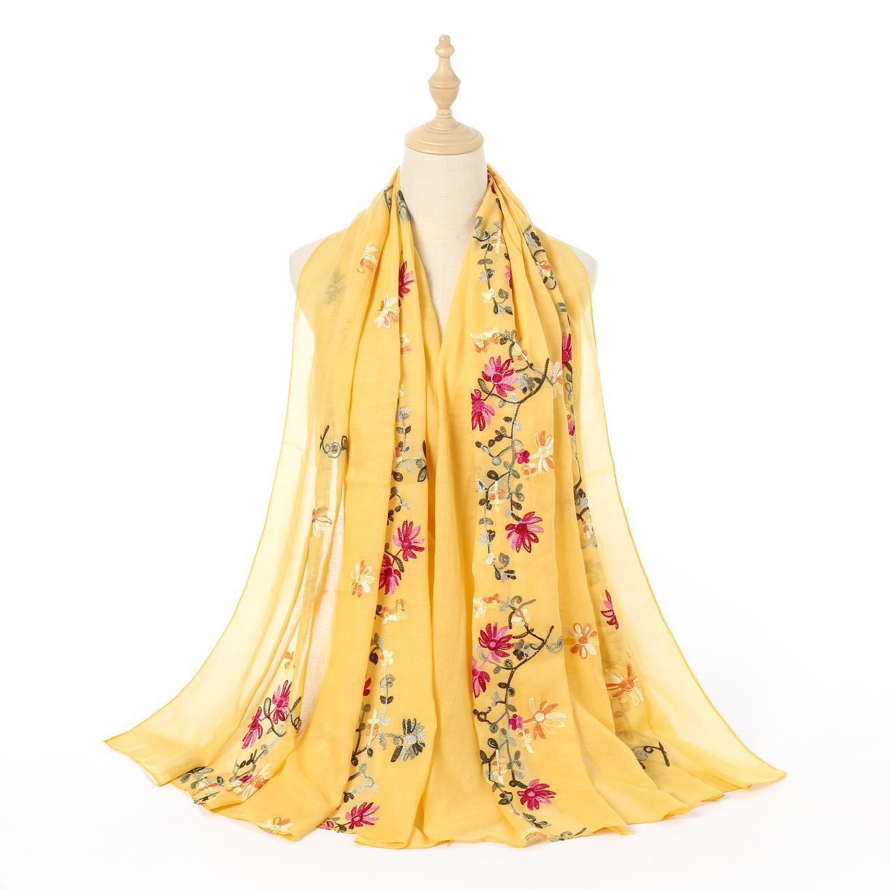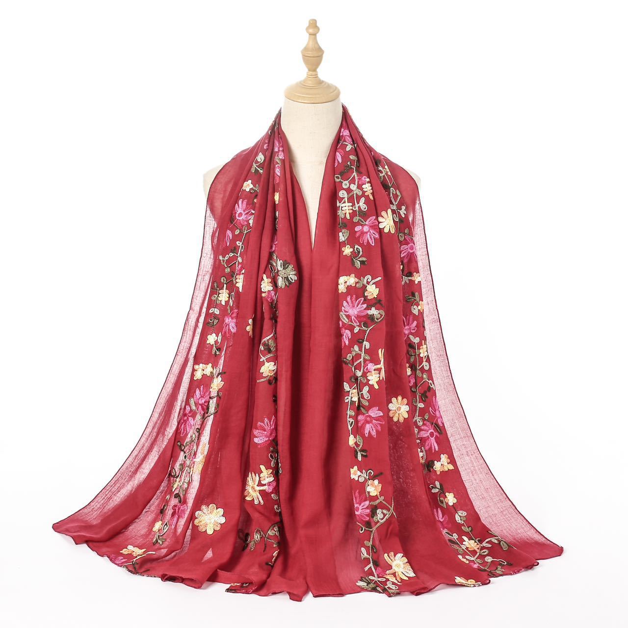 제조업체 도매 자수 민족풍 면마 스카프 여성용 가을 겨울 숄 문예풍 실크 스카프 롱 스타일 패셔너블하고 다용도스토어 가기