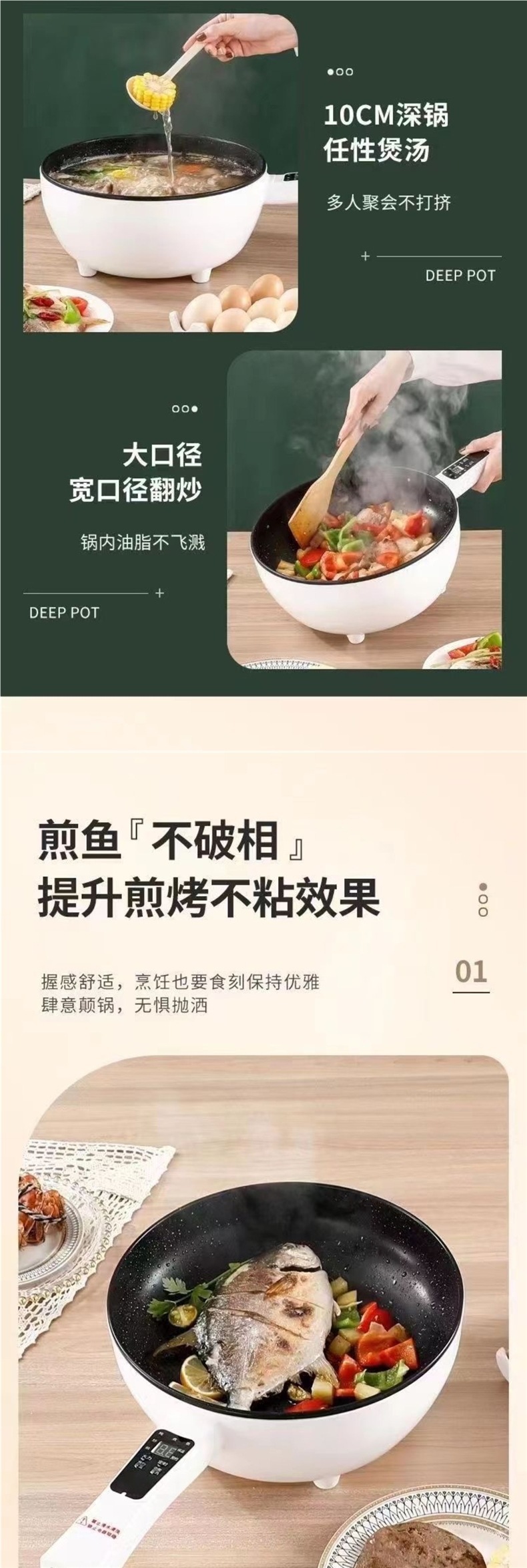 전기 Wok 가정용 대용량 볶음 다기능 비 스틱 팬 전기 Wok 통합 고출력 볶음 팬스토어 가기