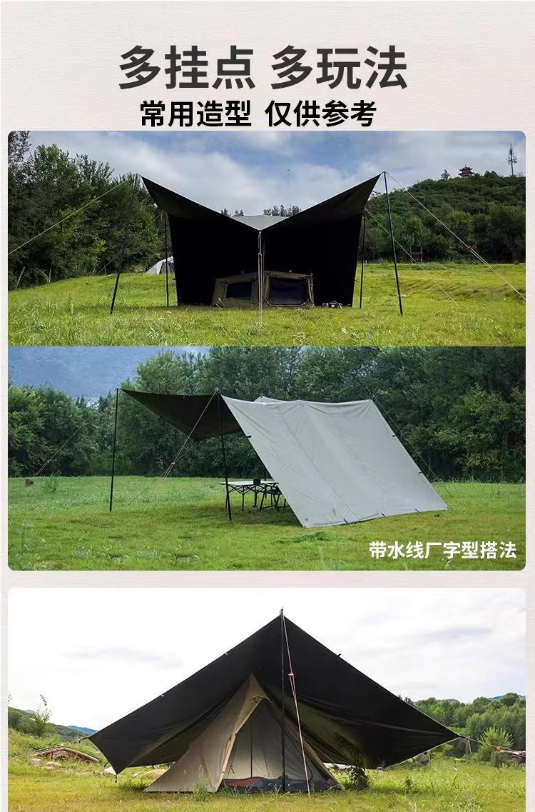야외 다기능 19 포인트 캐노피 피라미드 검은 접착제 실버 방비 태양 보호소 BC 캠핑