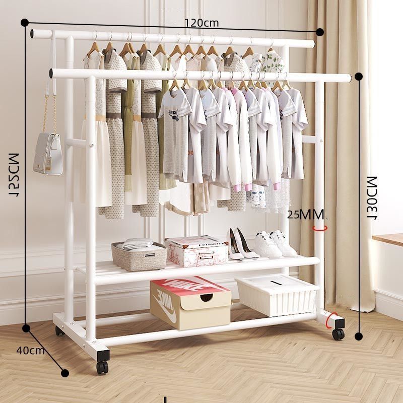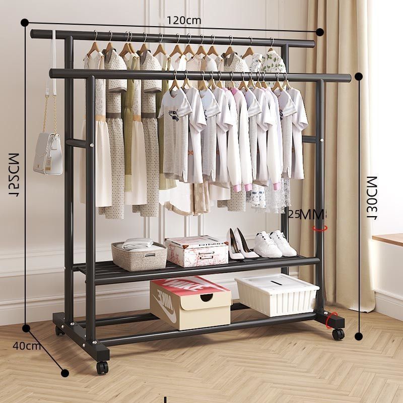 바닥 걸이 대담한 코트 랙 실내 두꺼운 움직일 수있는 바퀴 달린 옷 랙 발코니 옷 랙
