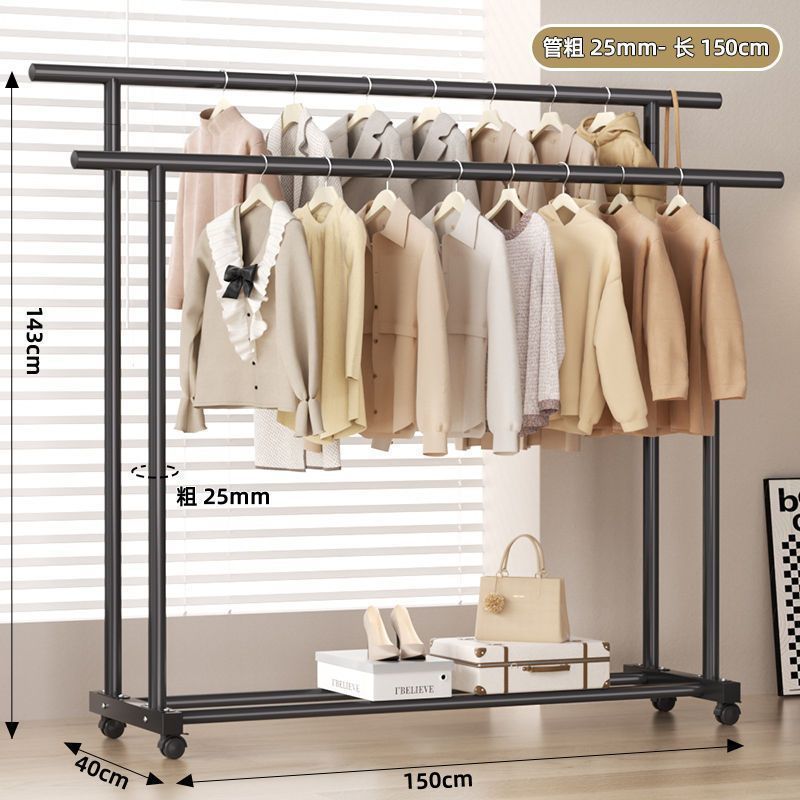 바닥 걸이 대담한 코트 랙 실내 두꺼운 움직일 수있는 바퀴 달린 옷 랙 발코니 옷 랙스토어 가기