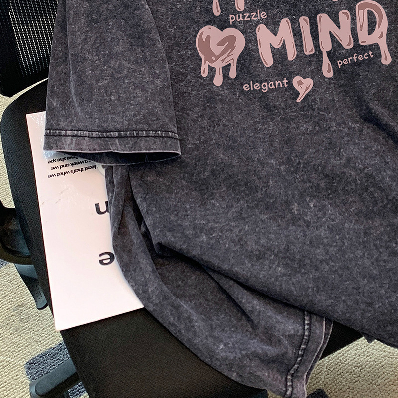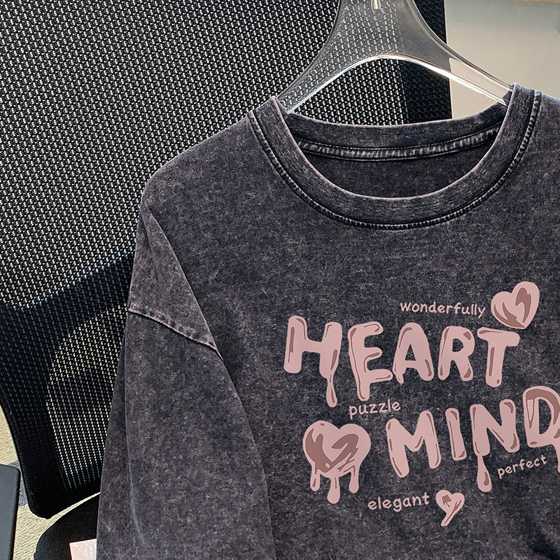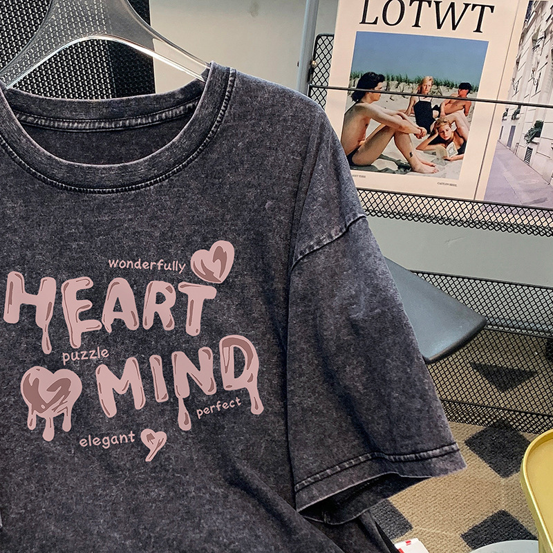 디자인 센스 세탁 오래 된 반팔 티셔츠 여성 여름 유럽과 미국 스타일 인스타그램 인기 브랜드 루즈 아메리칸 스타일 레트로 퓨어 코튼 반소매 티셔츠
