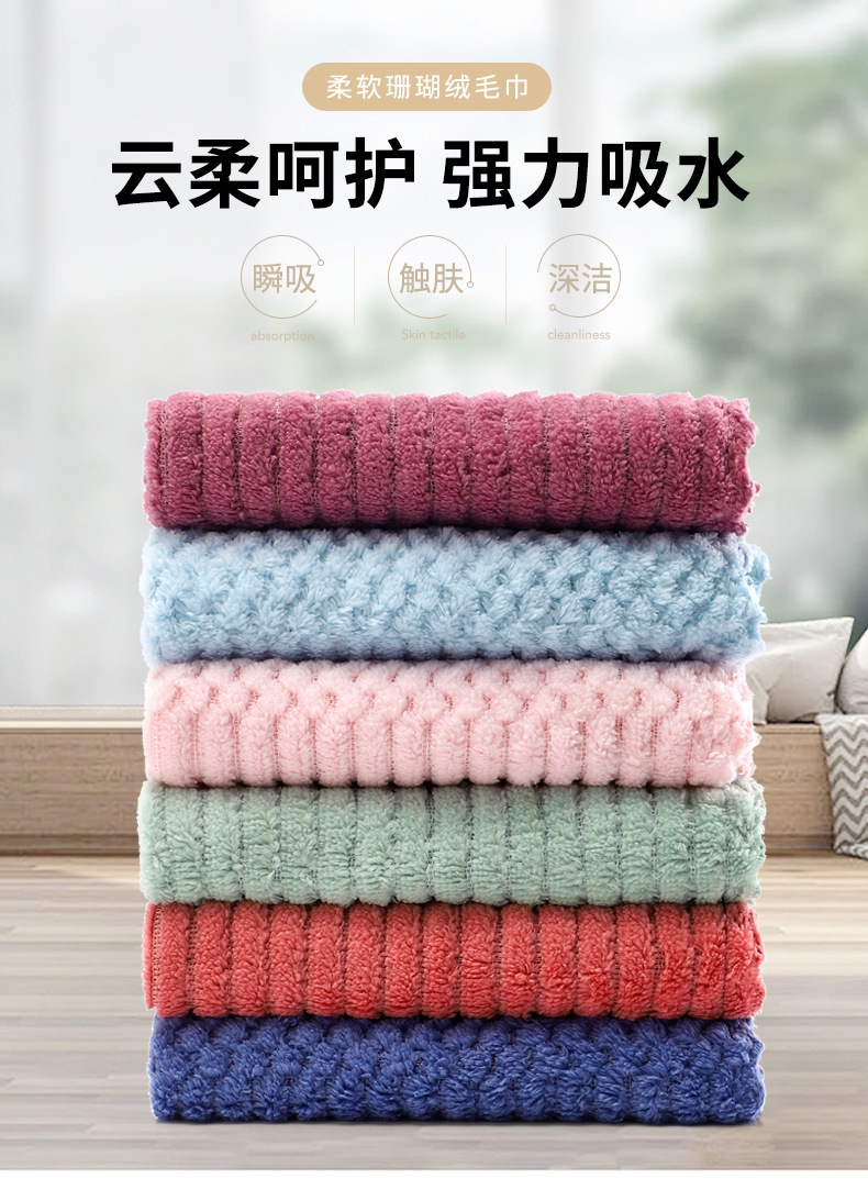 길조 격자 수건 워프 니트 산호 양털 타월 두꺼운 흡수성 부드러운 보풀이없는 얼굴 세척 선물 타월 공장 배치