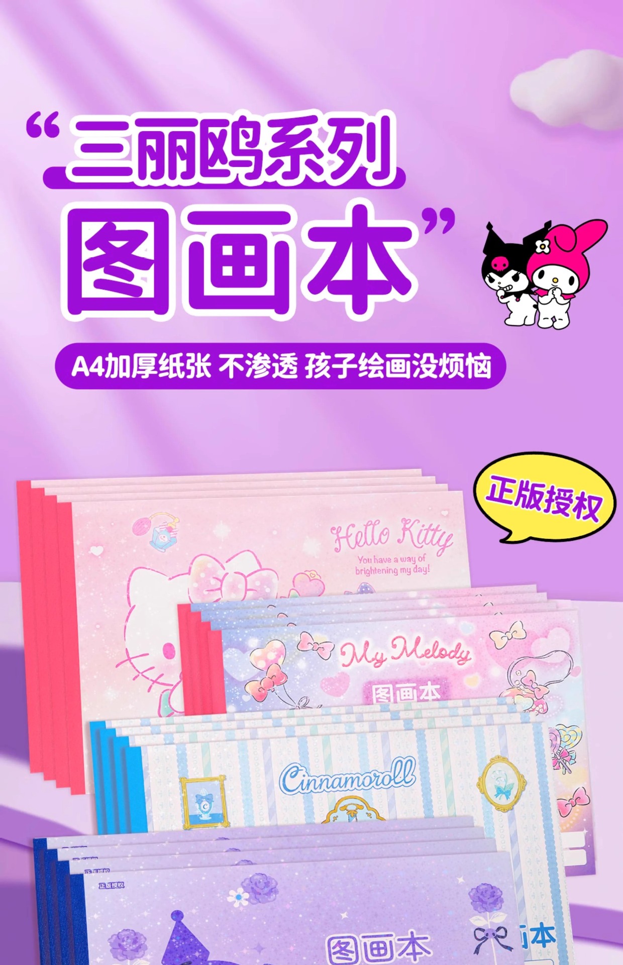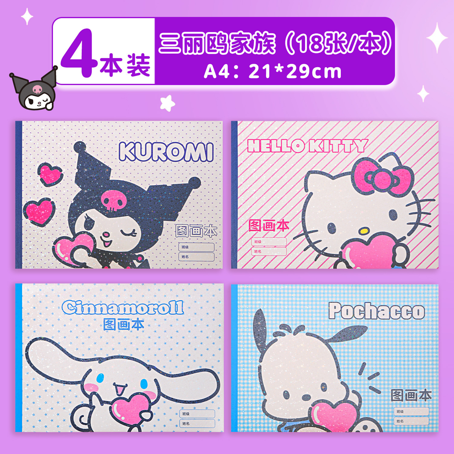 산리오 정품 A4 어린이 사진 스케치북 두꺼운 쿠로미 구이 개 공백 낙서 손으로 그린스토어 가기