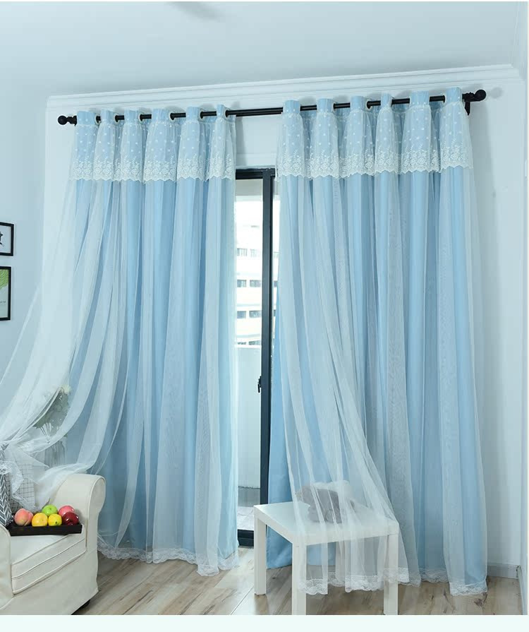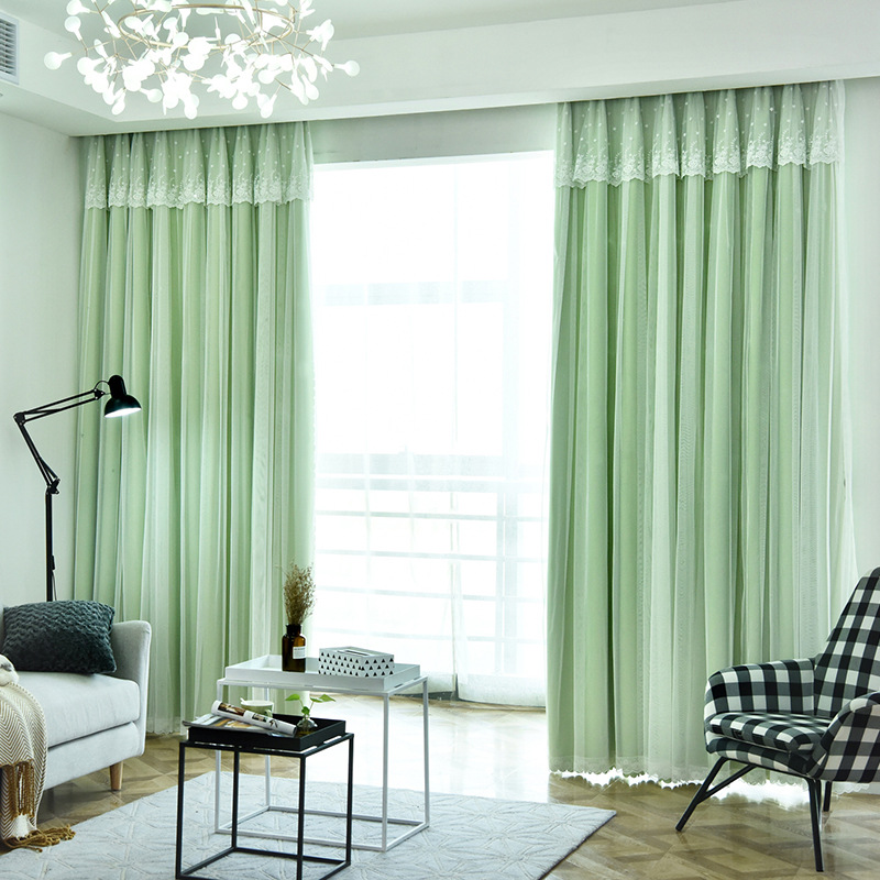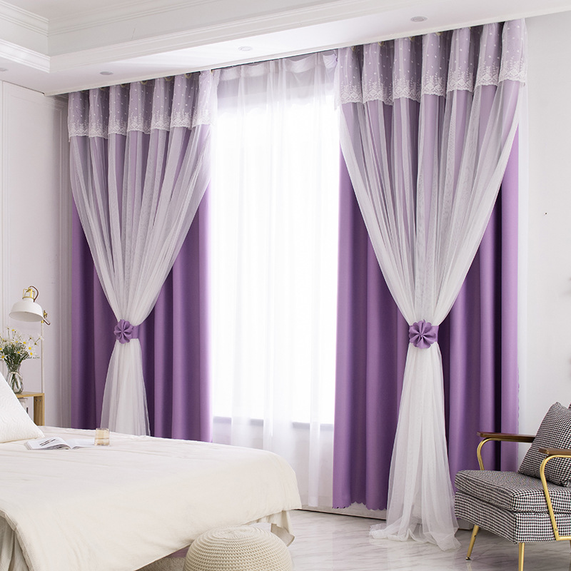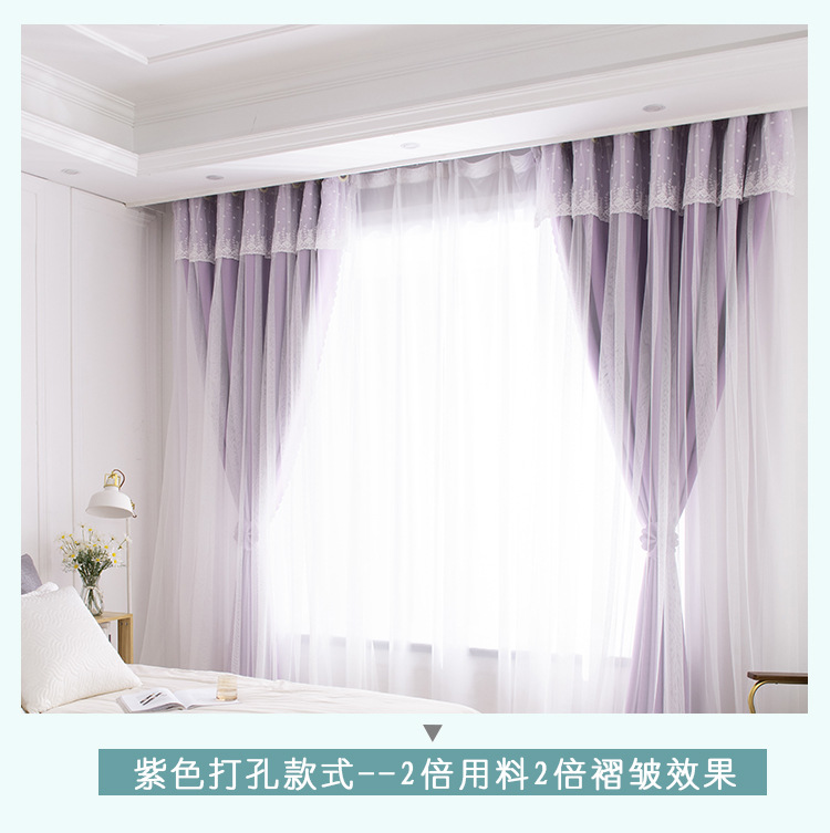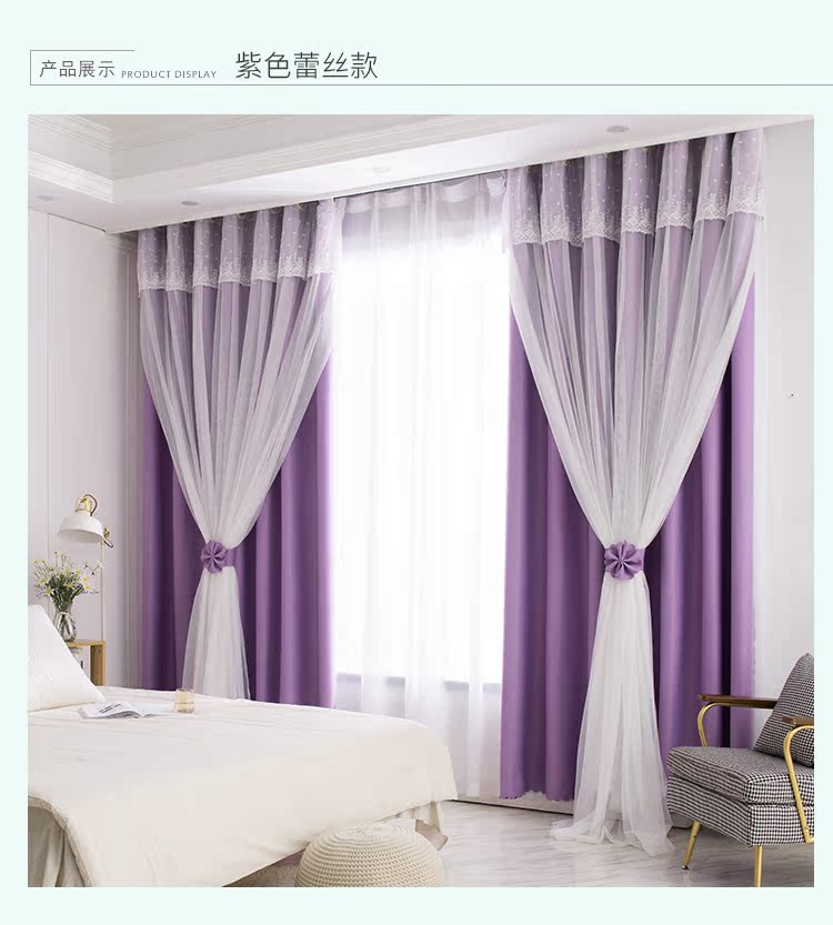 현대 간단한 더블 레이어 블랙 아웃 커튼 현대 침실 베이 창 단색 공주 스타일 거실을위한 따뜻한 마무리 천스토어 가기