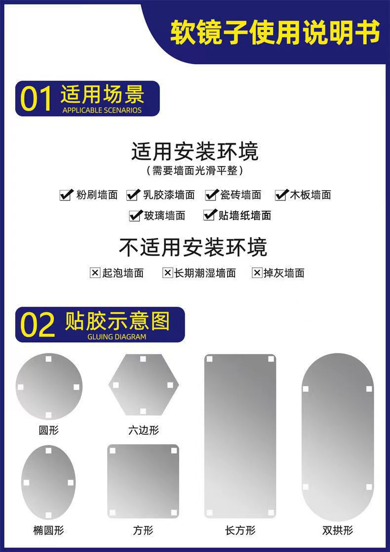 아크릴 부드러운 거울 벽 자체 접착 욕실 홈 바느질 전신 거울 기숙사 인터넷-유명한 화장품 거울