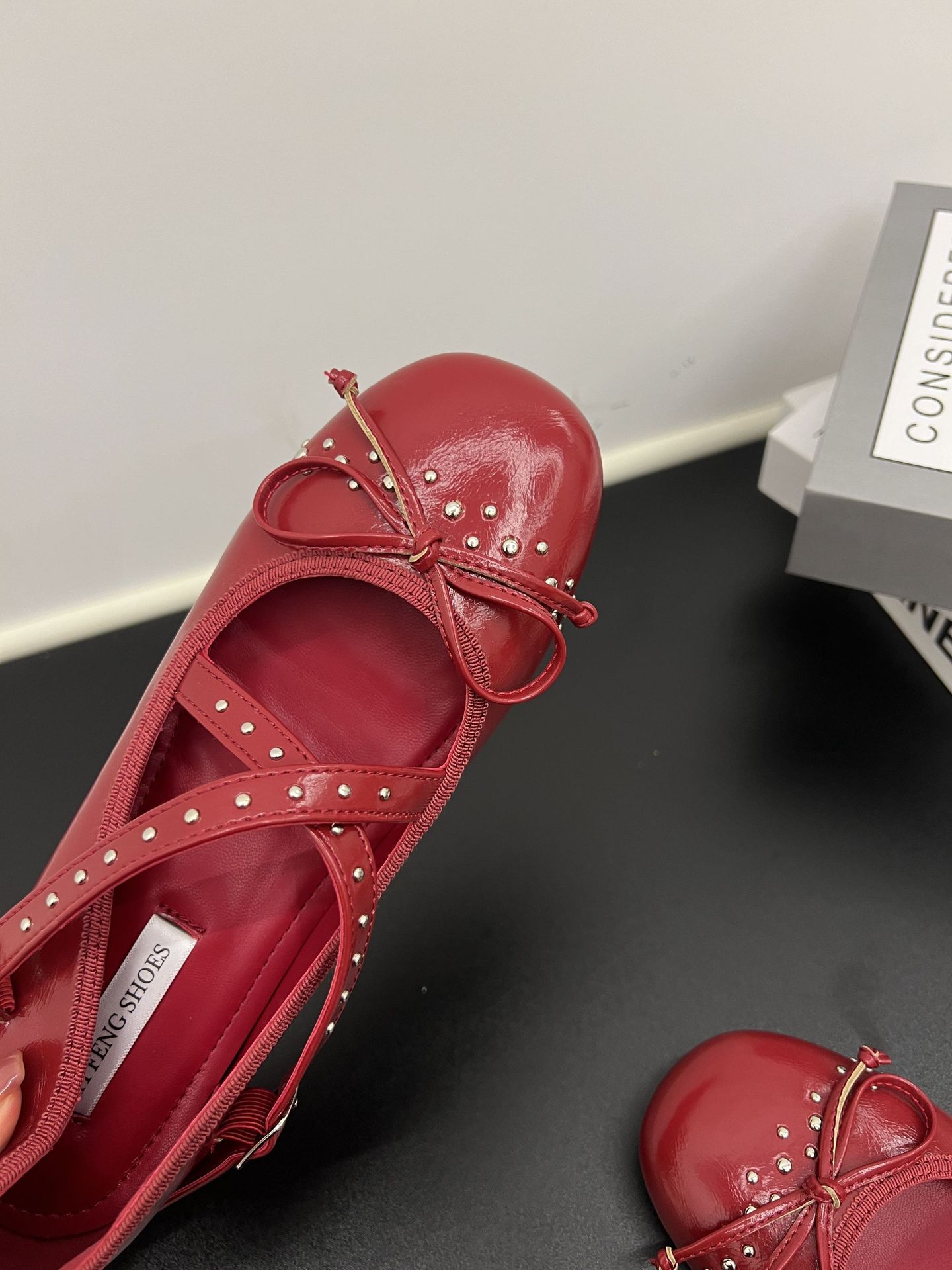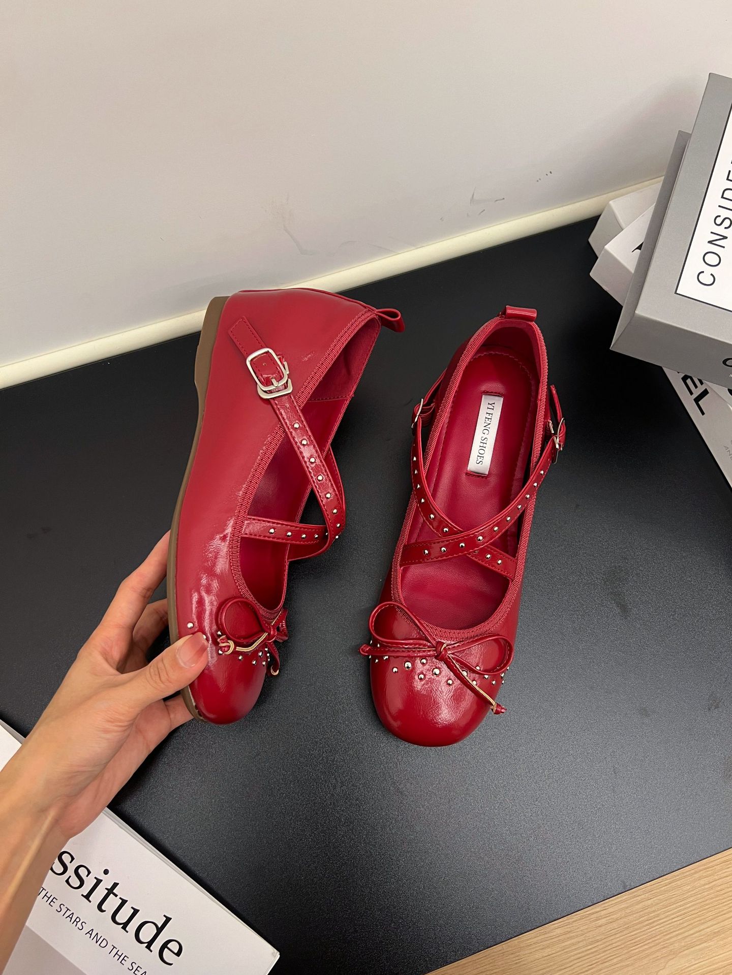 증가 5cm 활 얕은 입 신발 여성 2025 봄 새로운 레트로 리벳 크로스 버클 발레 신발스토어 가기
