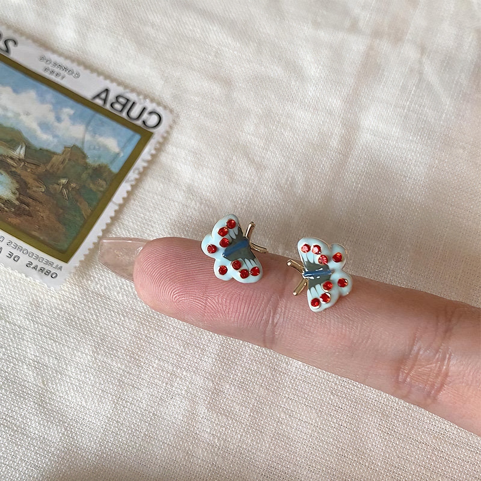 작은 절묘한 귀여운 컬러 나비 귀걸이 소녀 새로운 폭발 기질 패션 성격 틈새 디자인 귀걸이