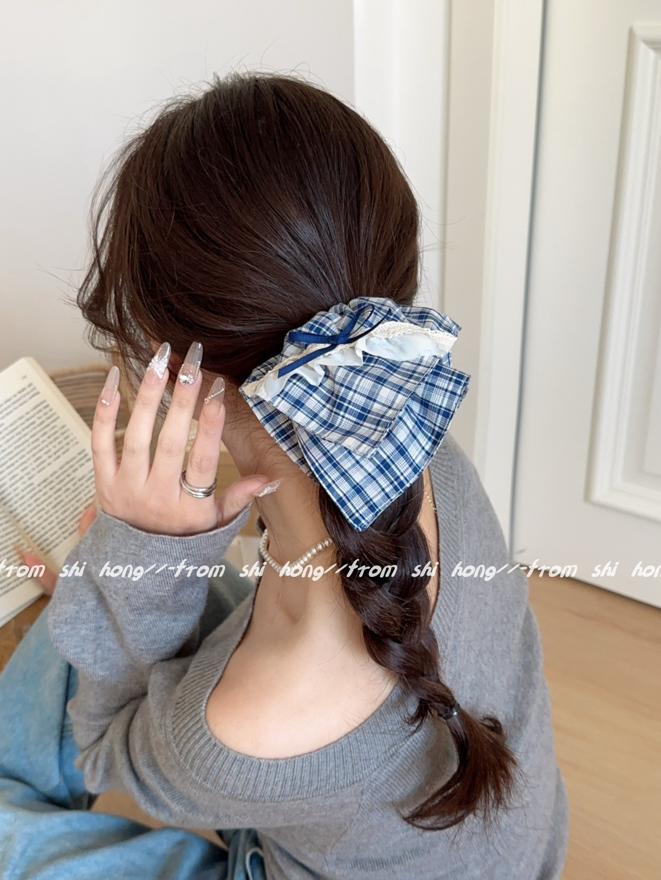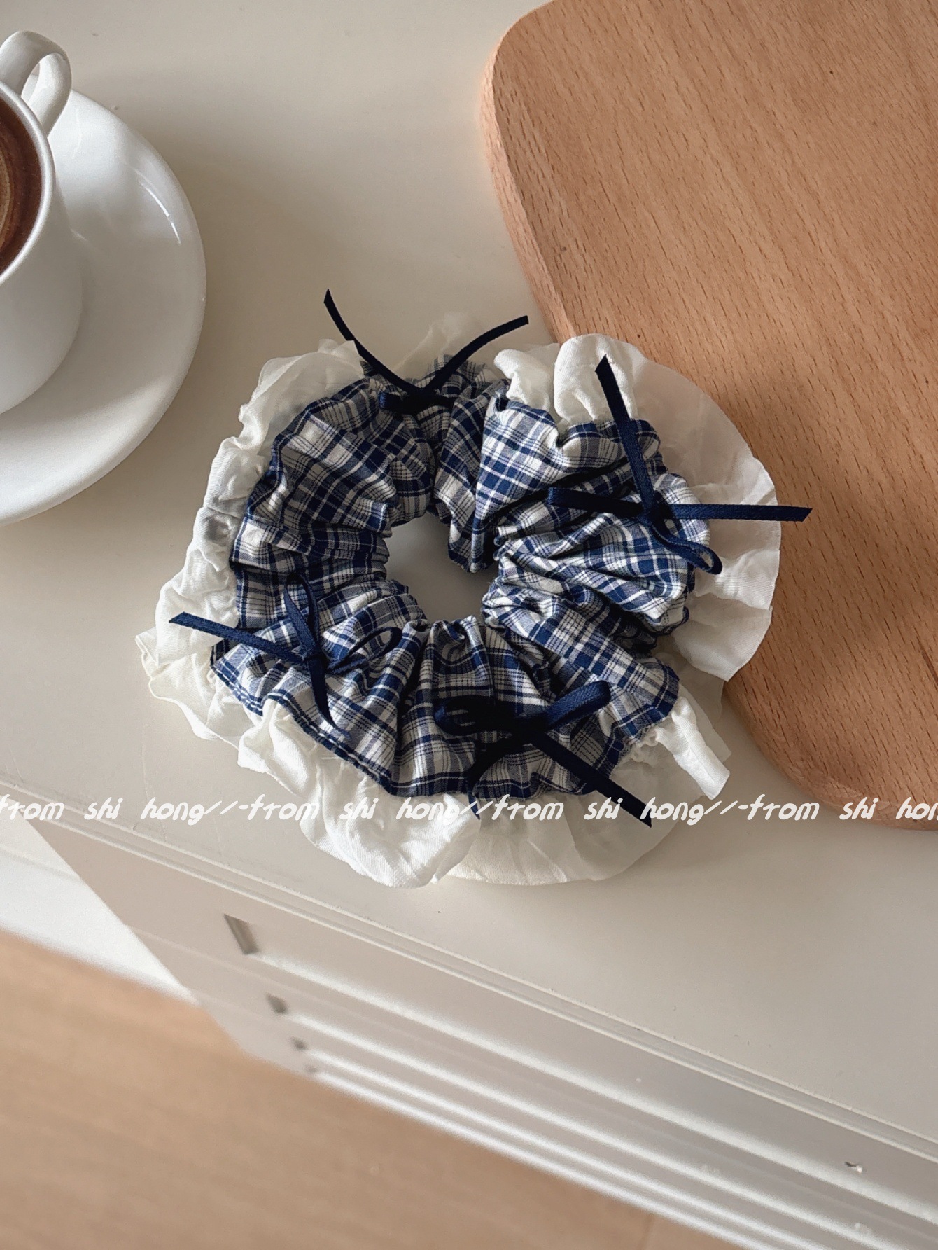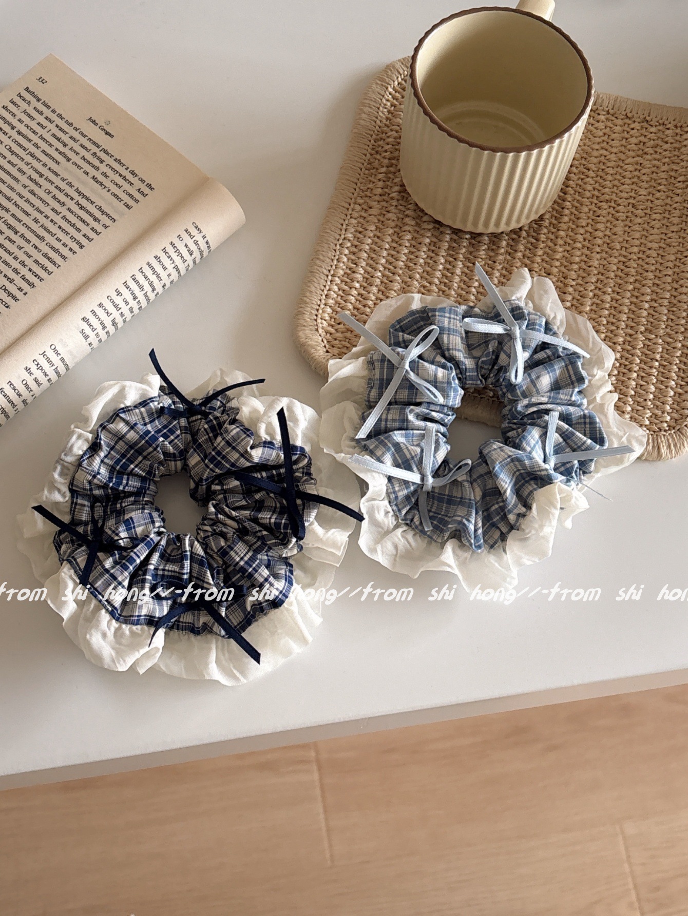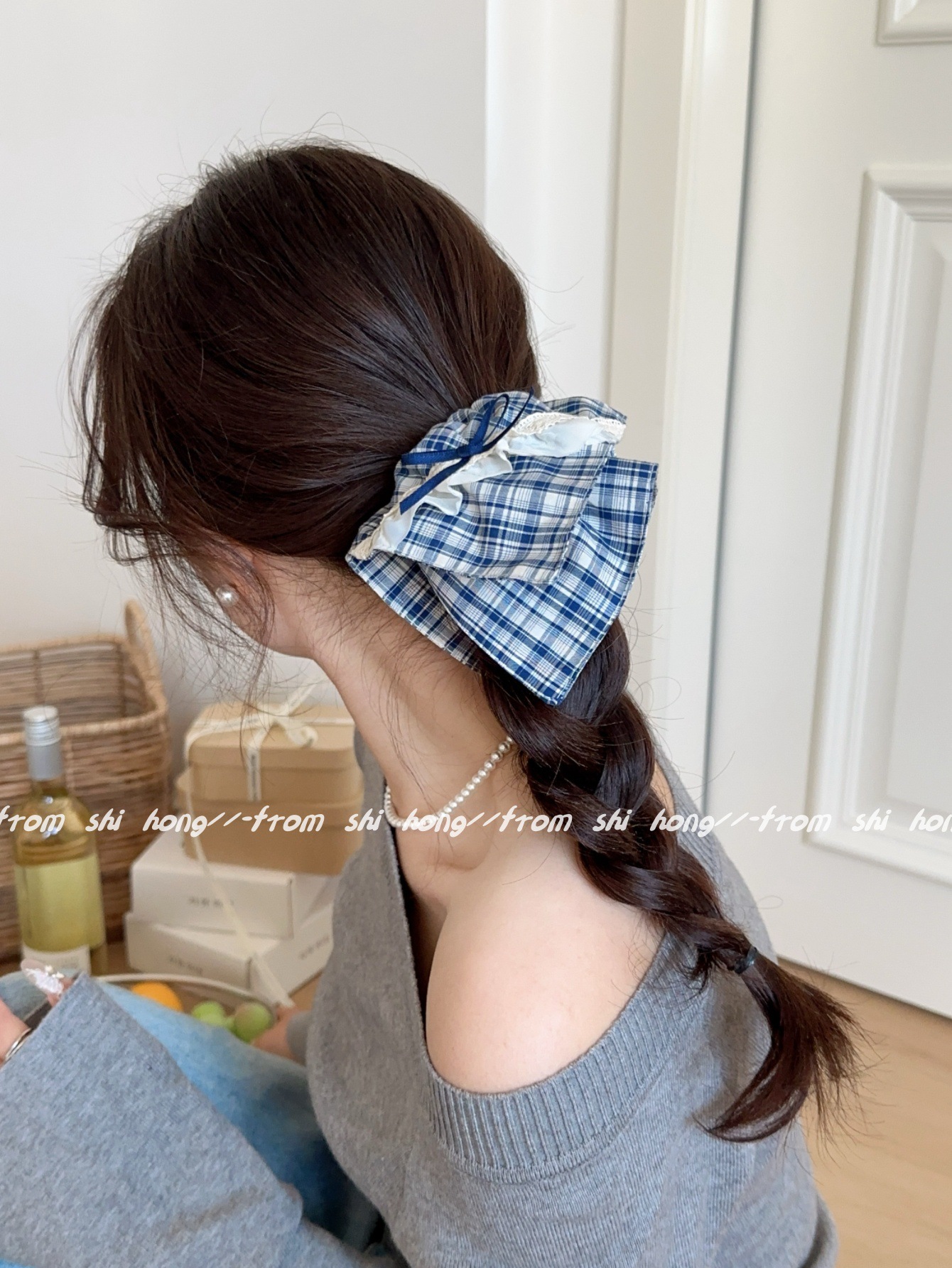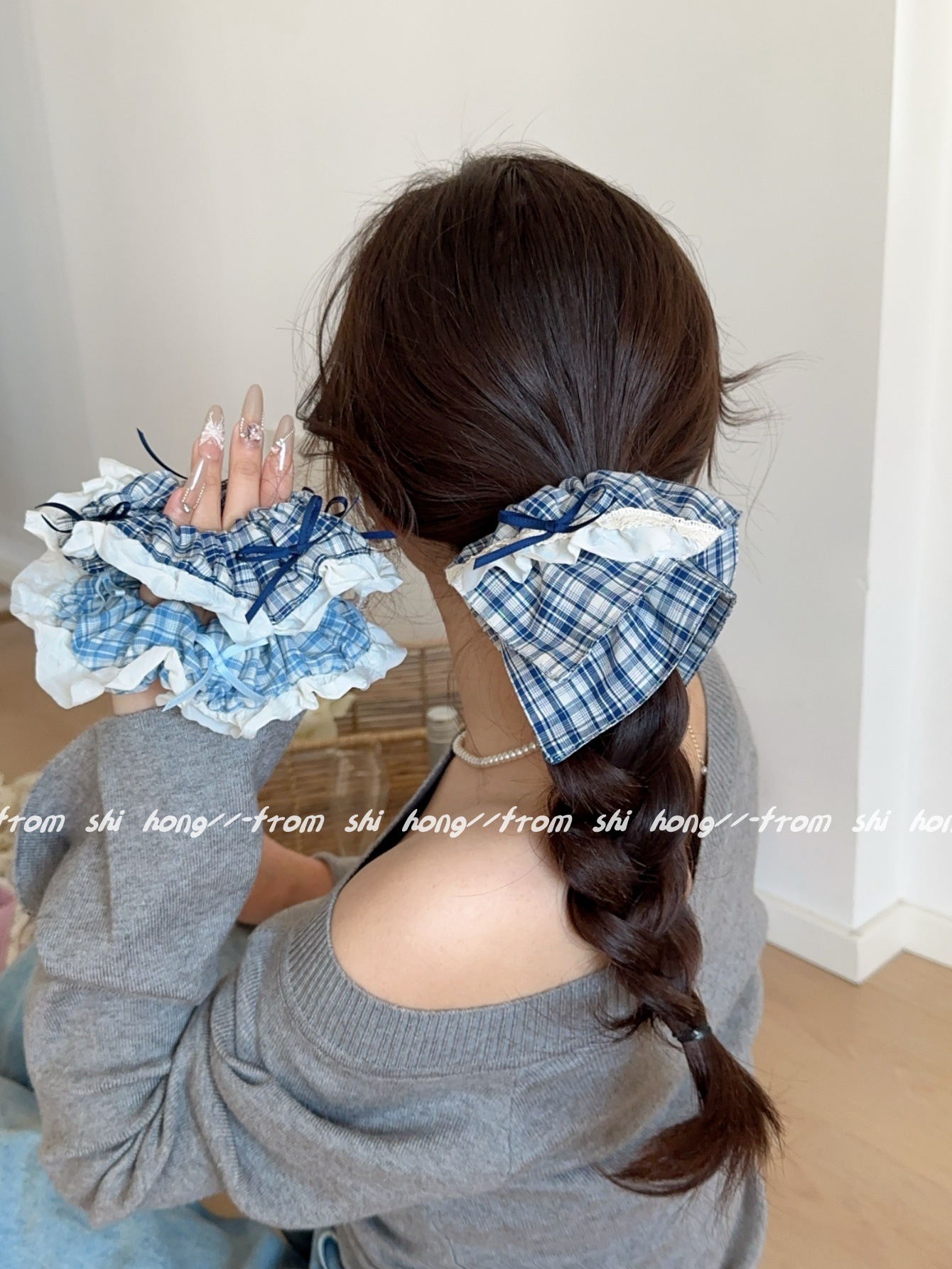 영국 아카데미 스타일 격자 무늬 레이스 레이스 헤어 로프 여성 높은 미용 가치 헤어 플라워 개인화 된 포니 테일 헤어 로프 장내 로프스토어 가기