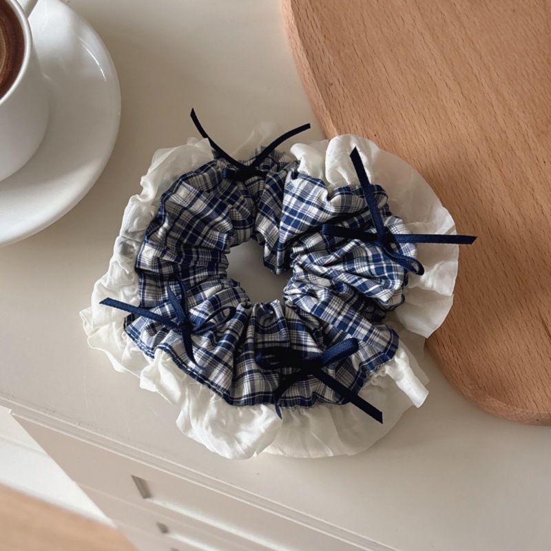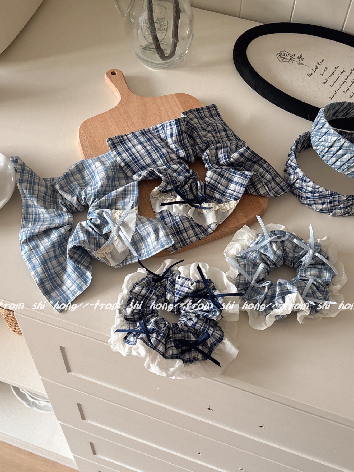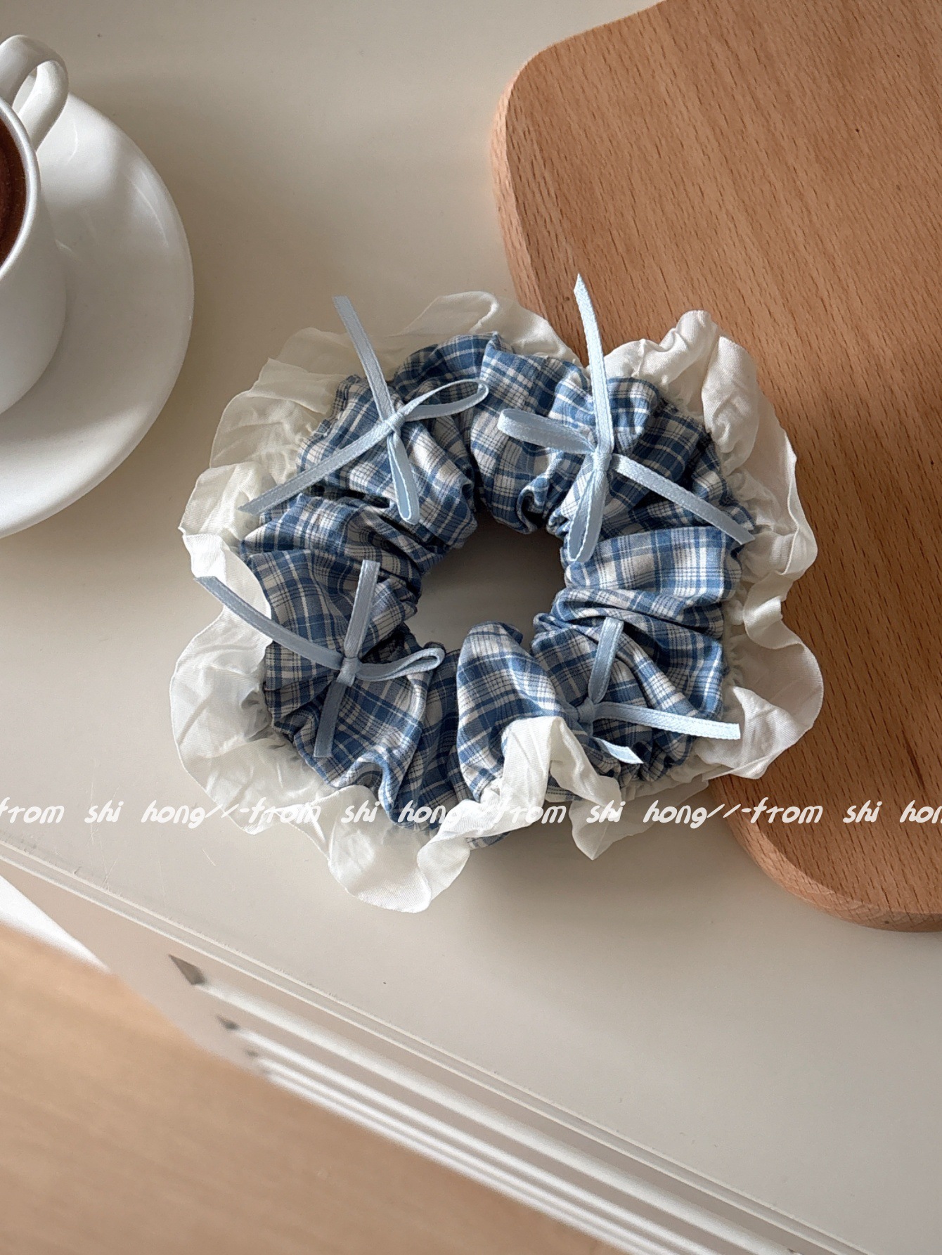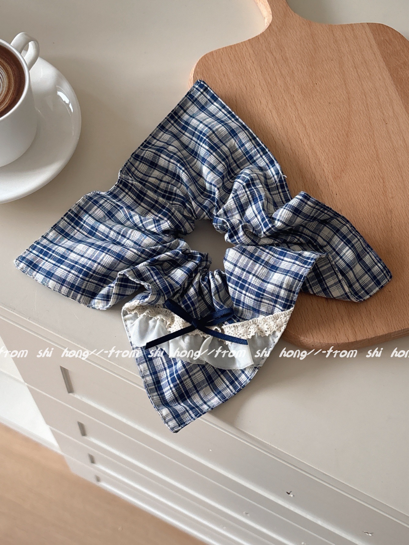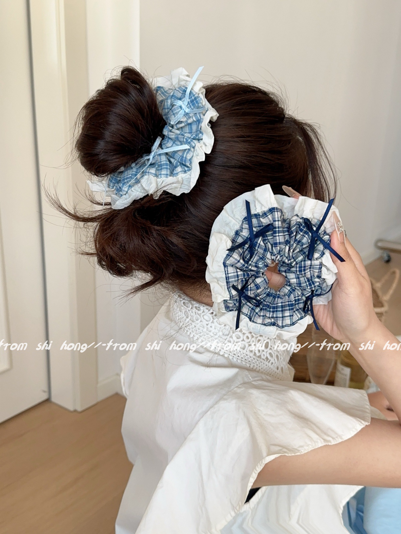 영국 아카데미 스타일 격자 무늬 레이스 레이스 헤어 로프 여성 높은 미용 가치 헤어 플라워 개인화 된 포니 테일 헤어 로프 장내 로프스토어 가기