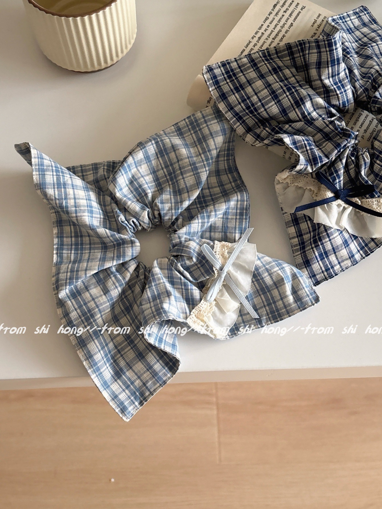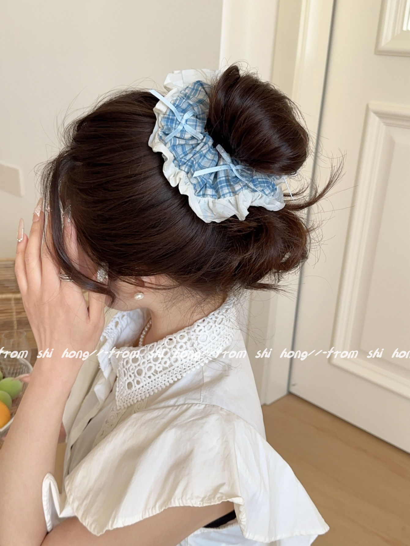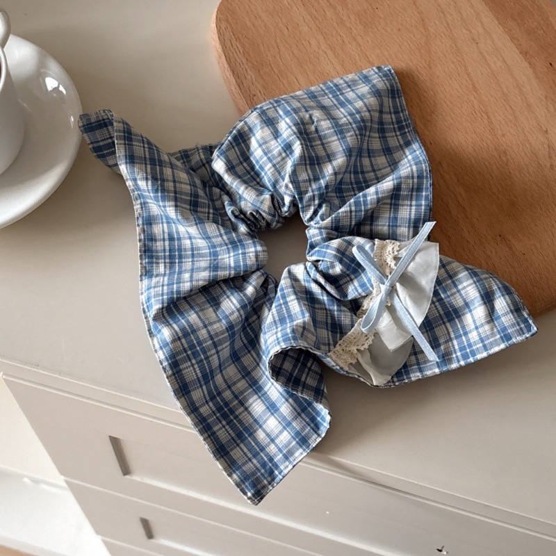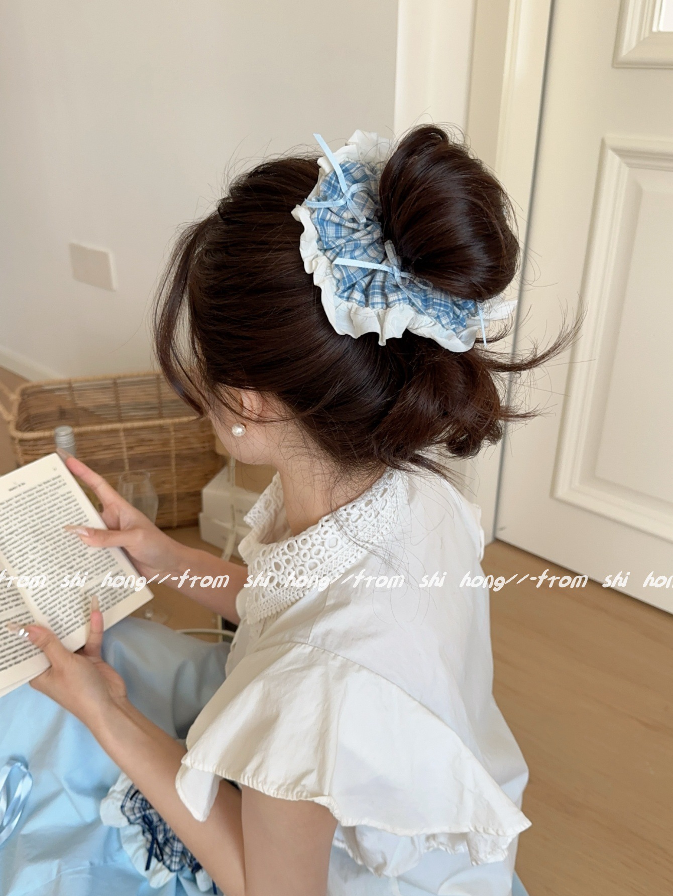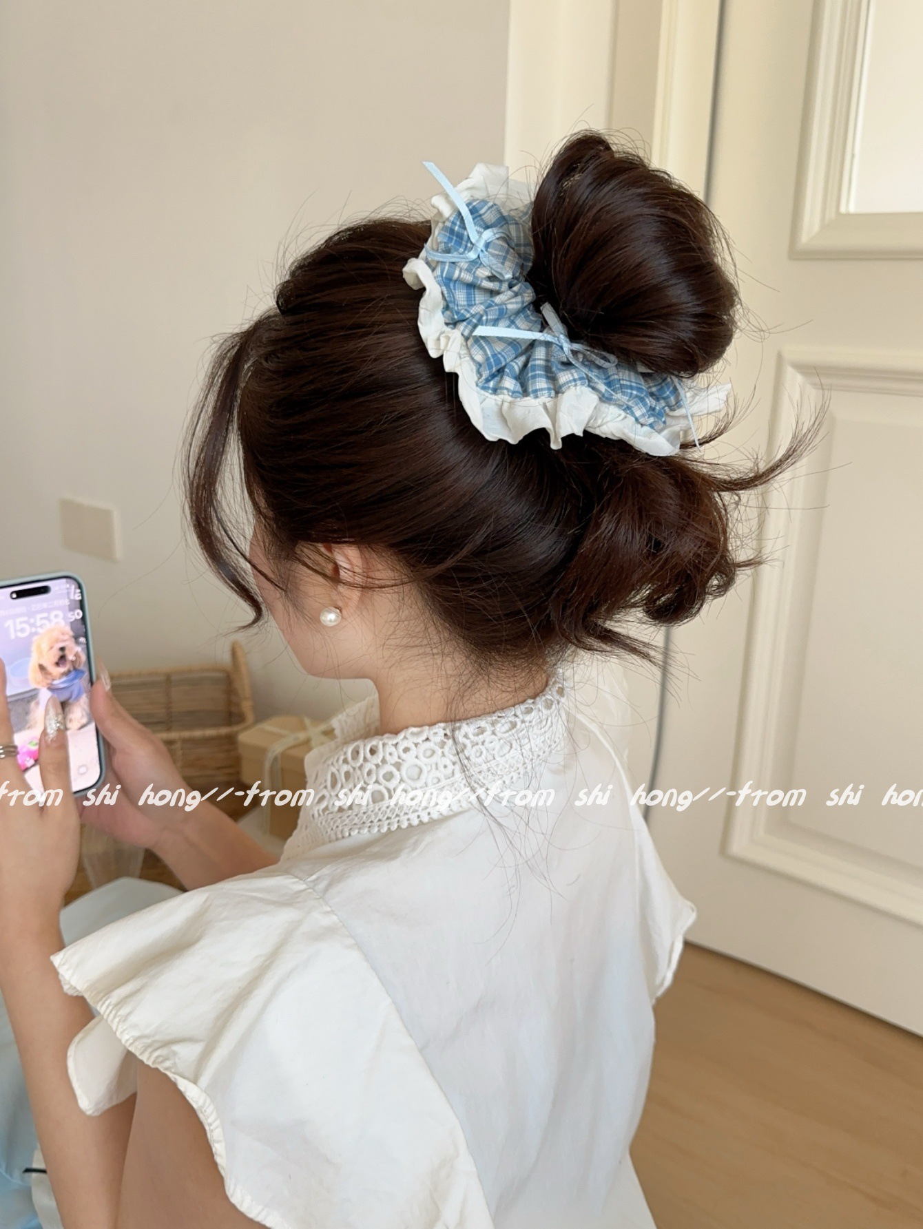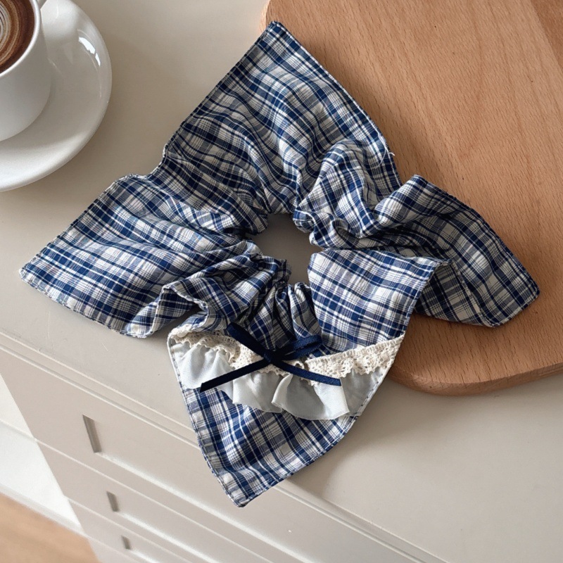 영국 아카데미 스타일 격자 무늬 레이스 레이스 헤어 로프 여성 높은 미용 가치 헤어 플라워 개인화 된 포니 테일 헤어 로프 장내 로프스토어 가기