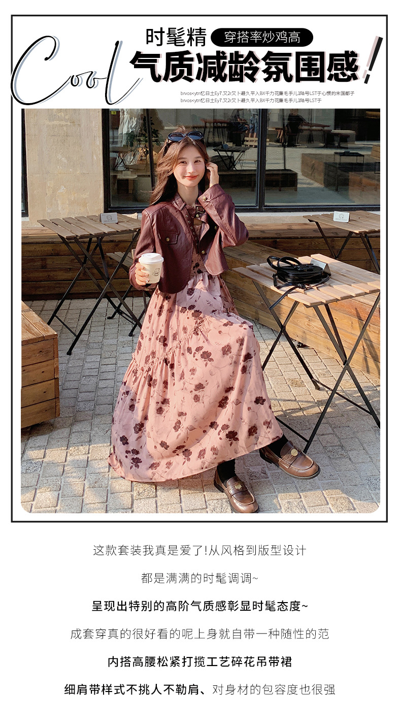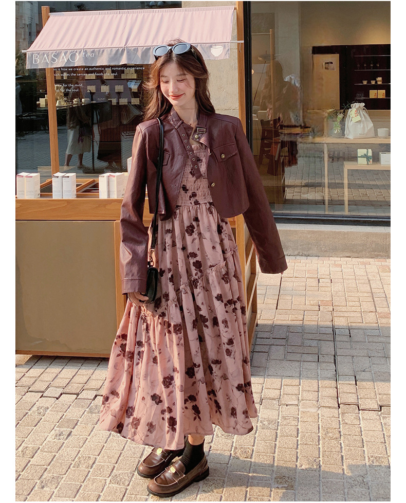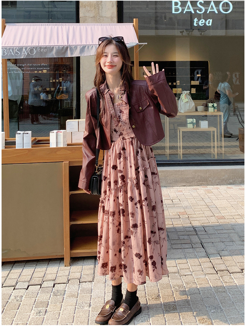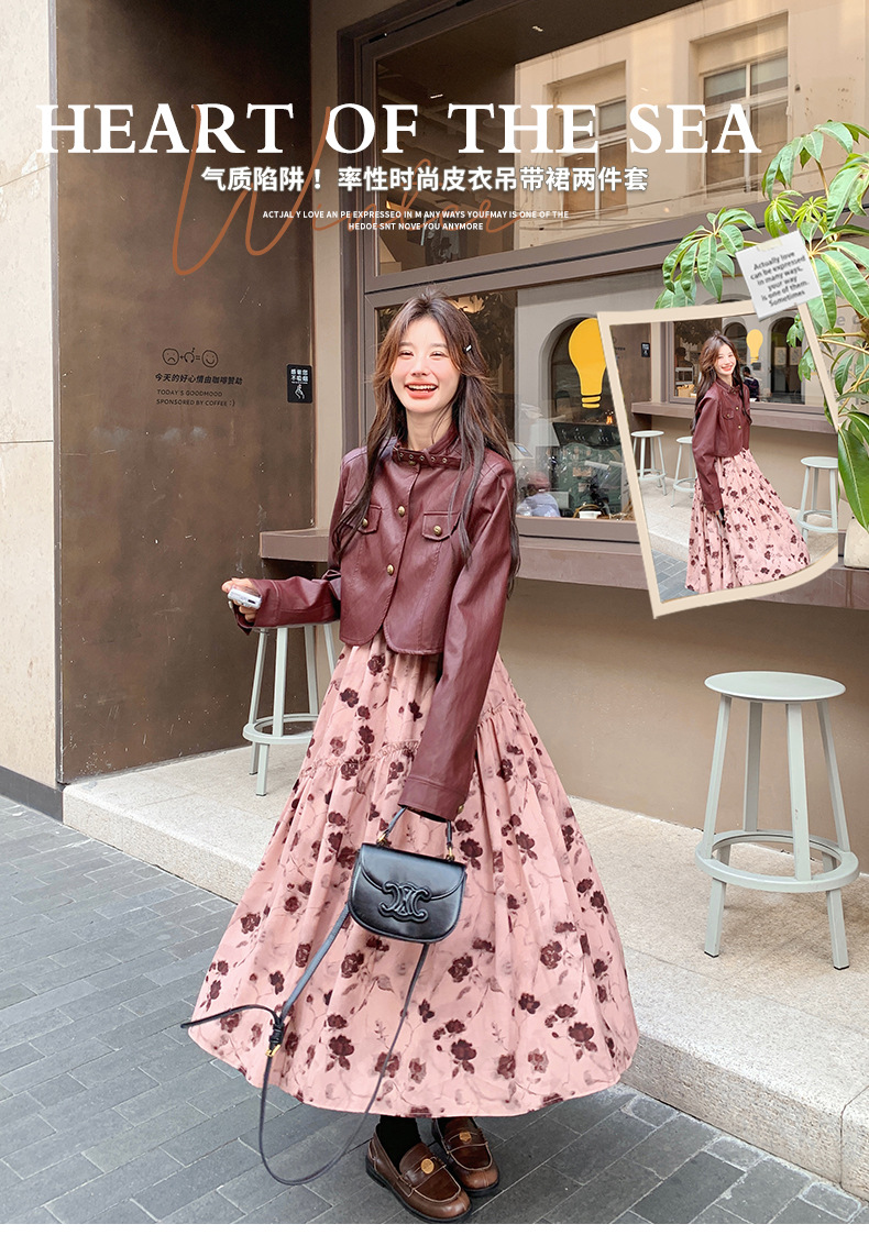 [멩메이] 25 봄 스타일 프렌치 티 브레이크 원피스 세트 여성용 가죽 재킷 투피스 세트스토어 가기