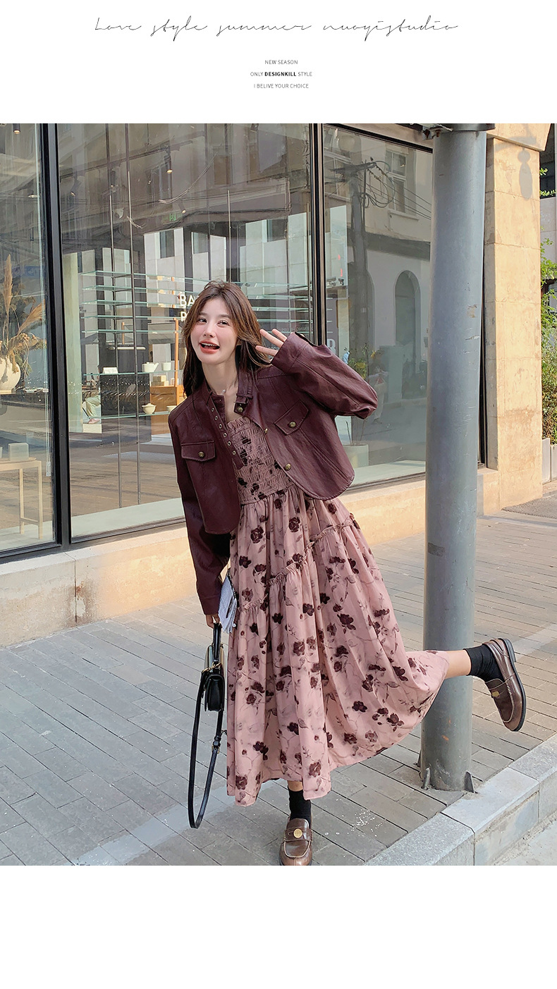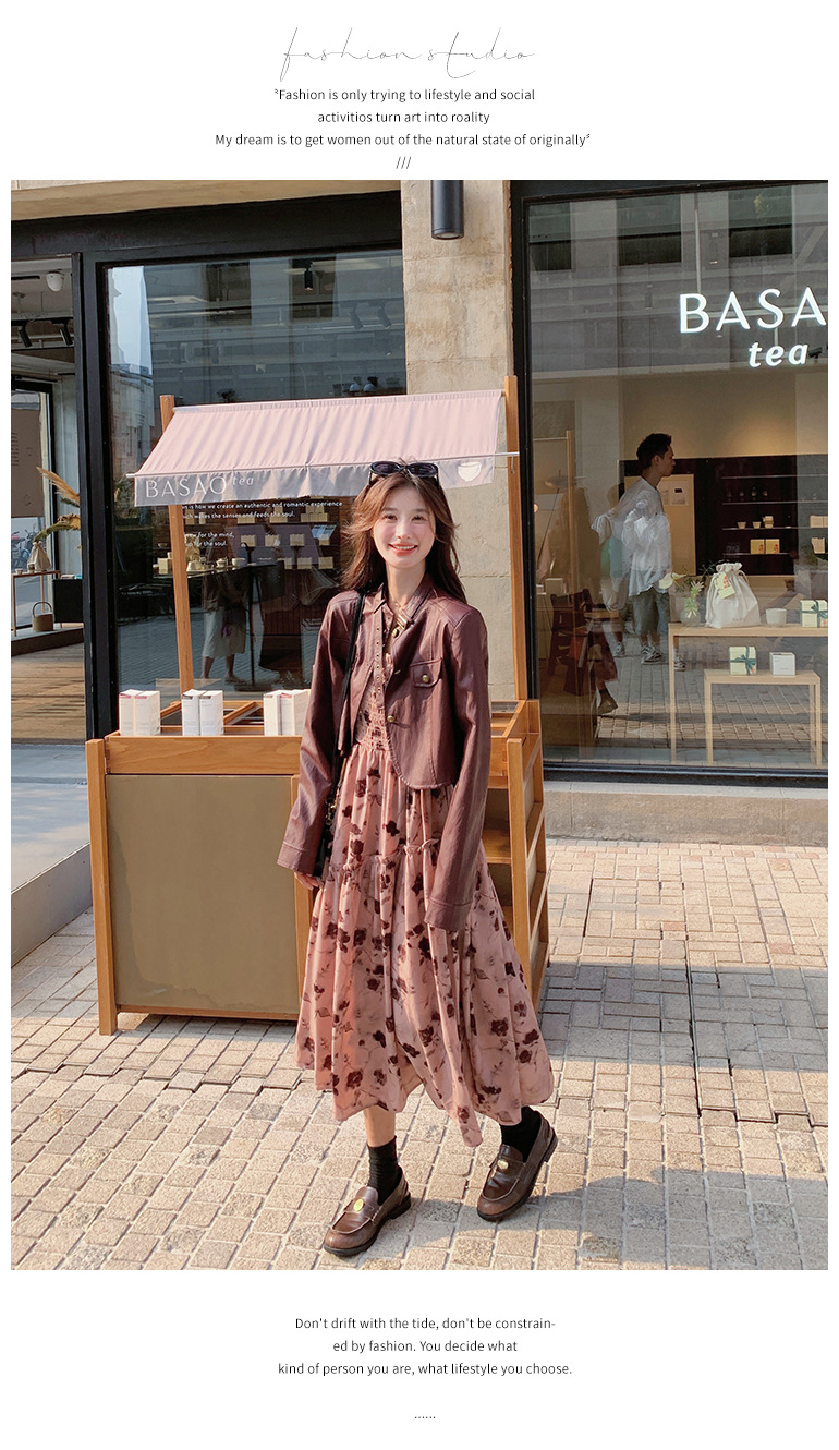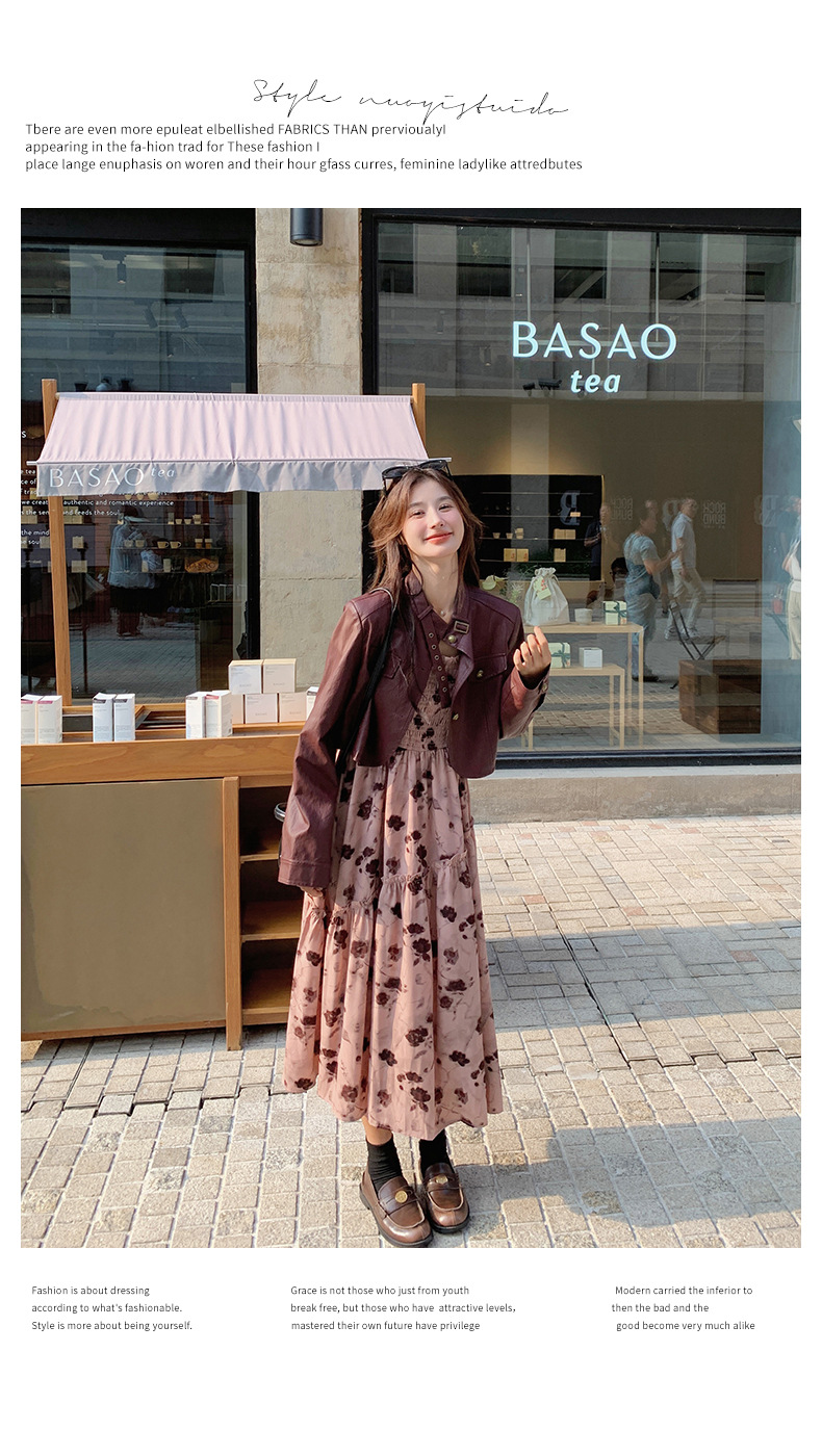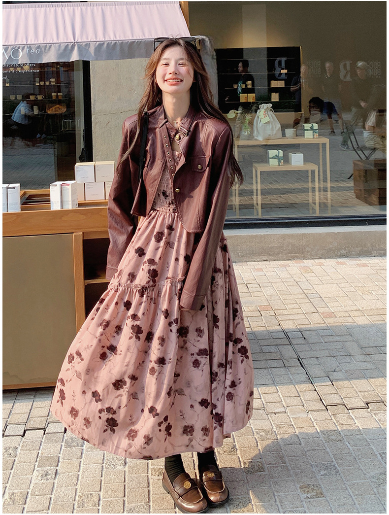 [멩메이] 25 봄 스타일 프렌치 티 브레이크 원피스 세트 여성용 가죽 재킷 투피스 세트스토어 가기