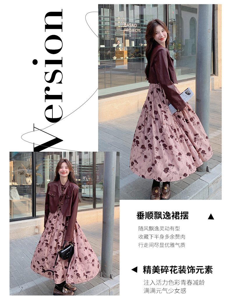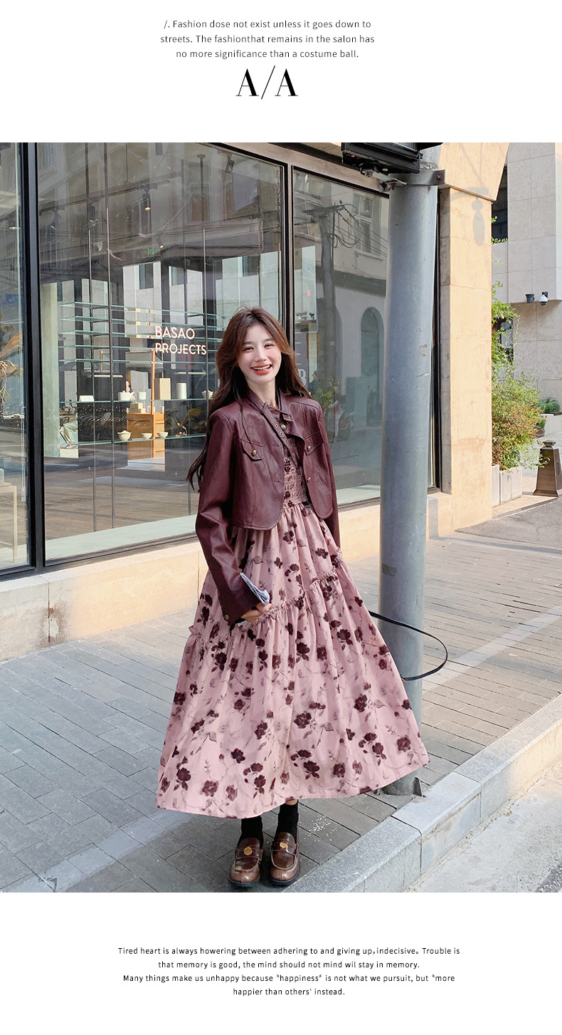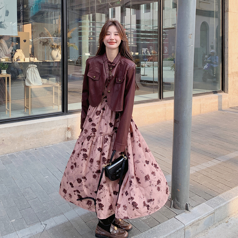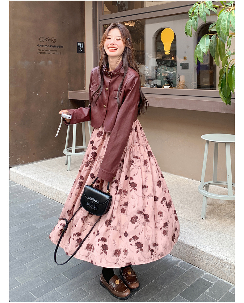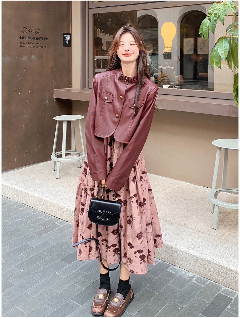 [멩메이] 25 봄 스타일 프렌치 티 브레이크 원피스 세트 여성용 가죽 재킷 투피스 세트