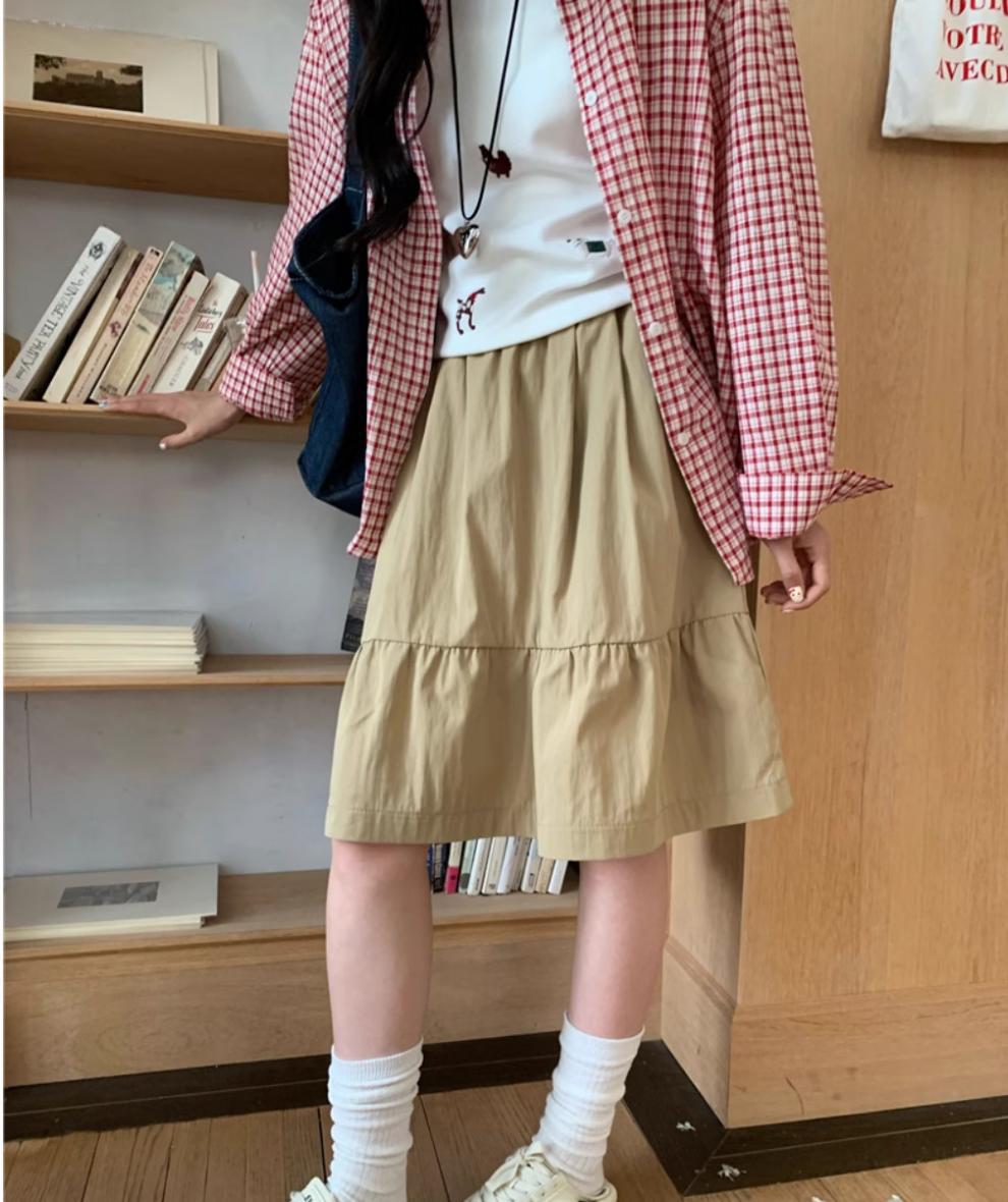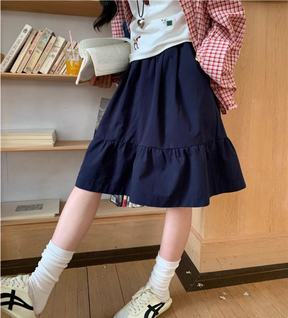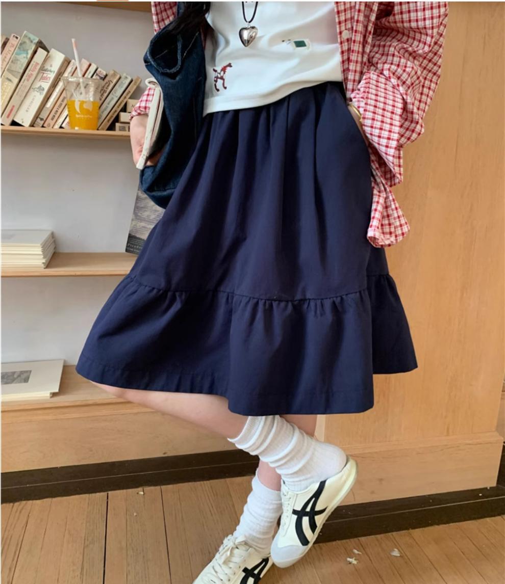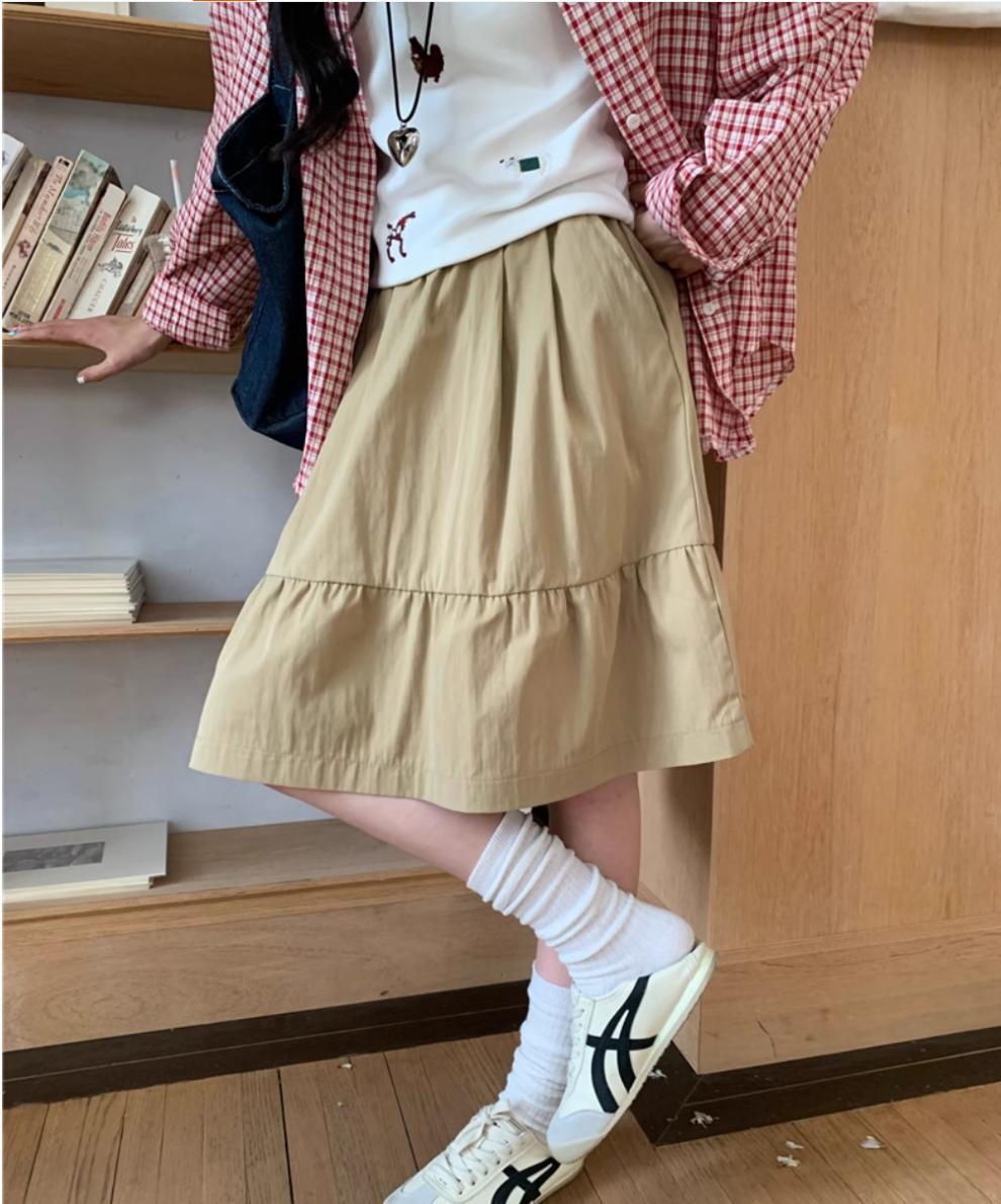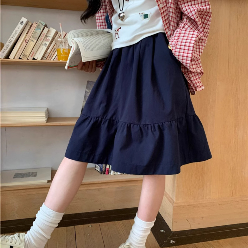 일본식 스커트 여성의 봄과 여름 2025 새로운 고급 센스 학업 스타일 스커트 높은 허리 우산 스커트 A-라인 스커트