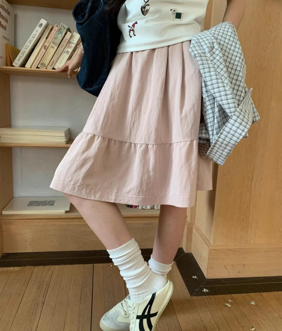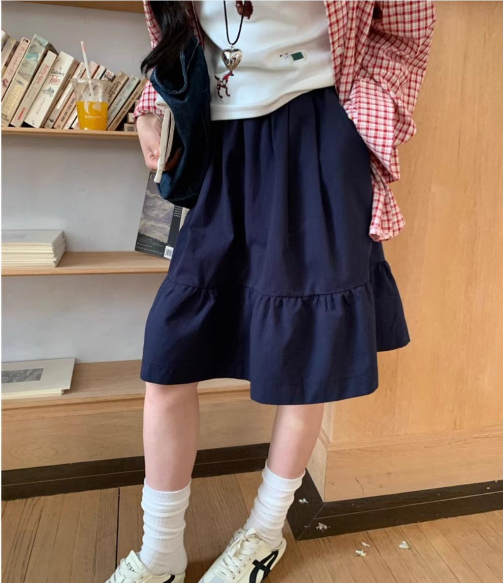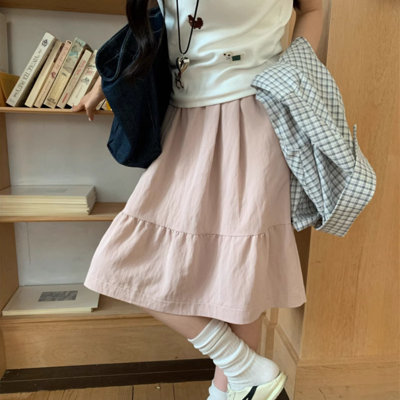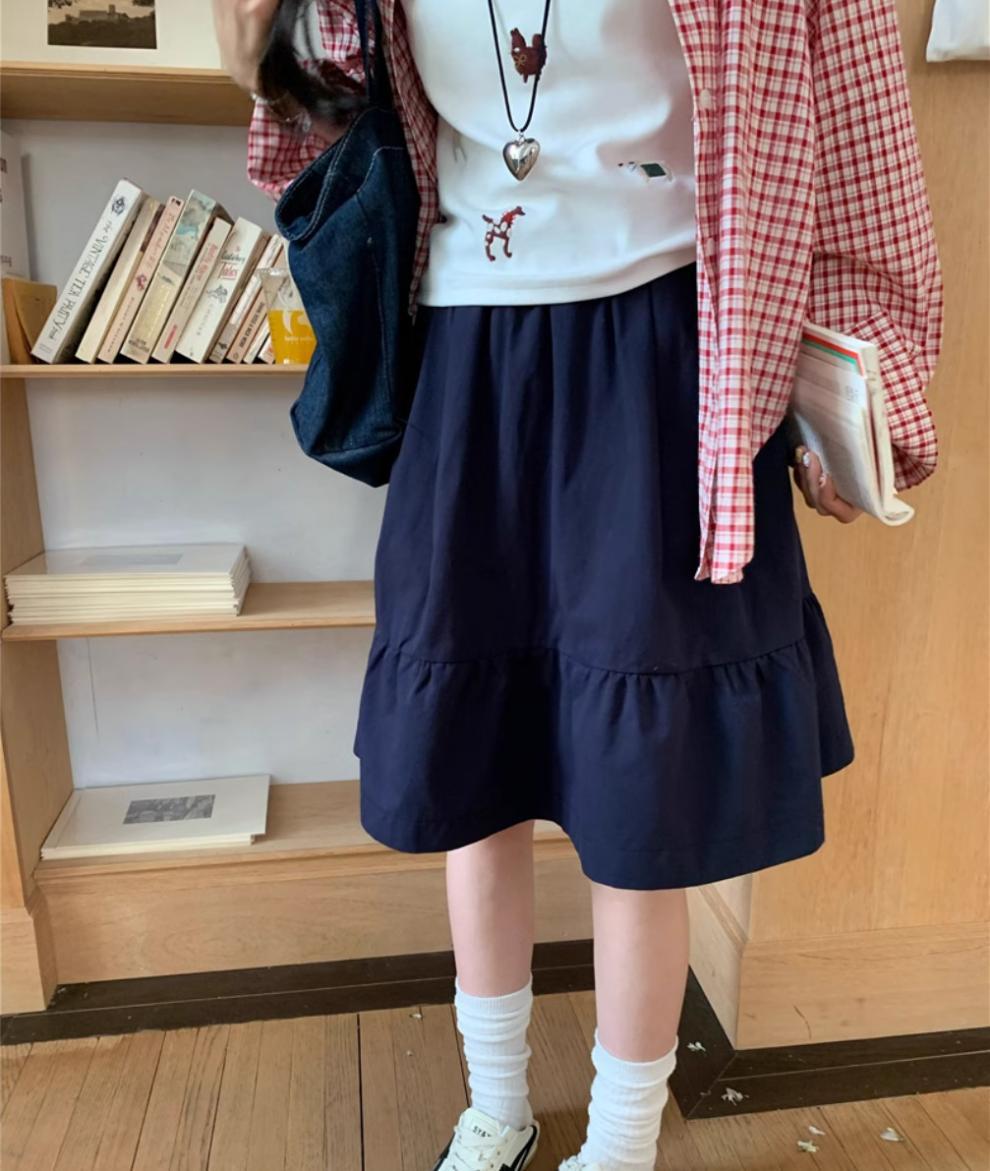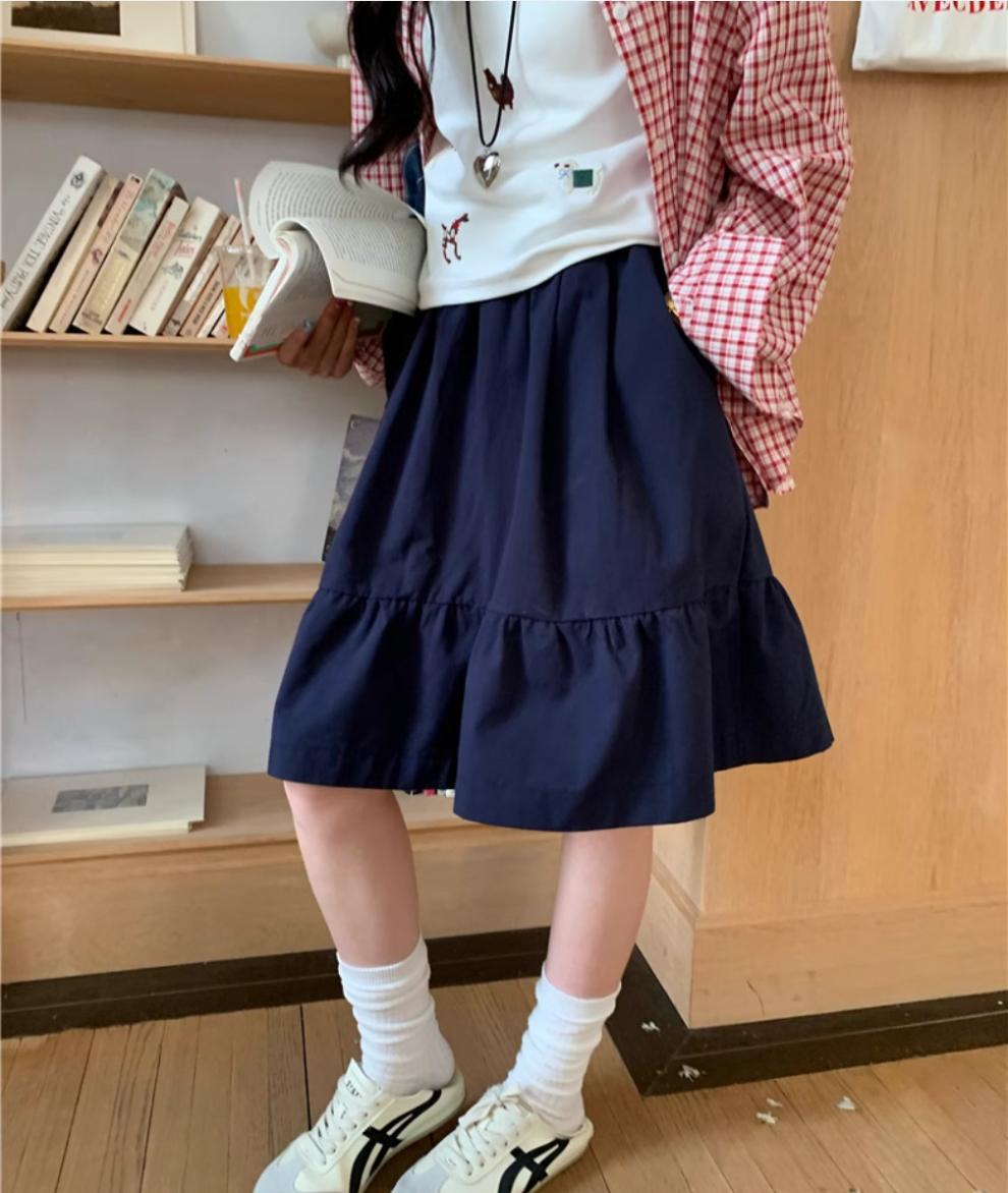 일본식 스커트 여성의 봄과 여름 2025 새로운 고급 센스 학업 스타일 스커트 높은 허리 우산 스커트 A-라인 스커트