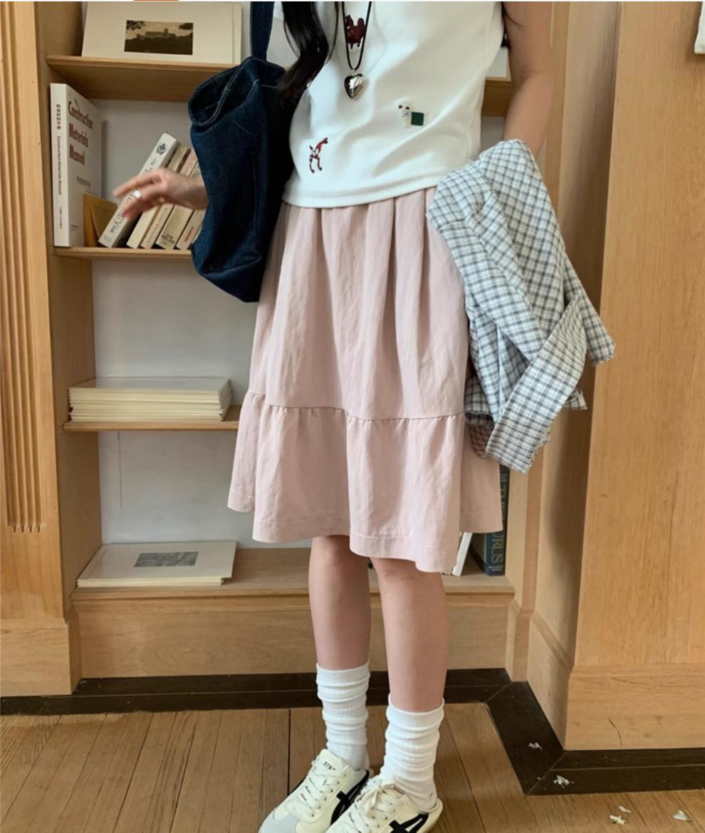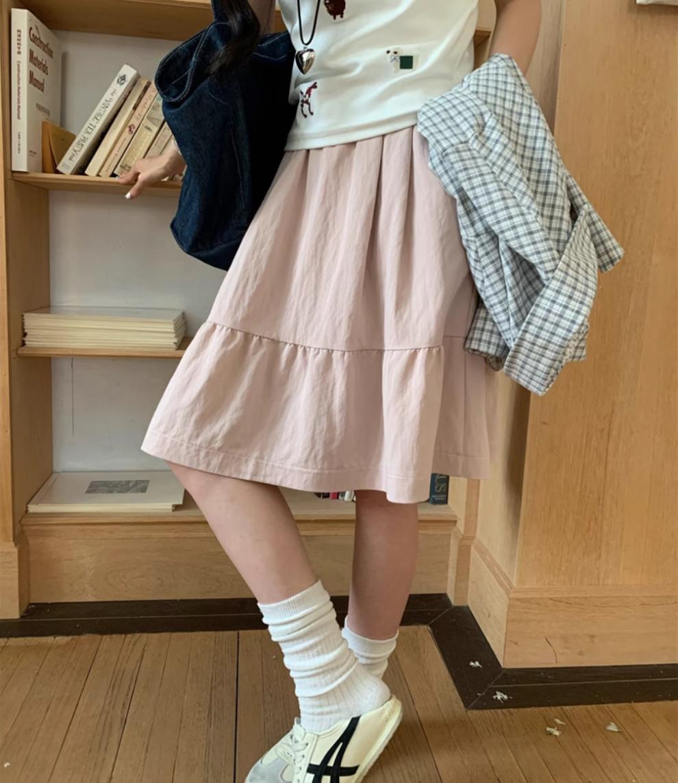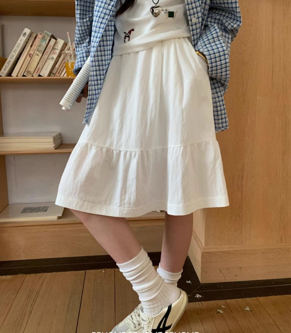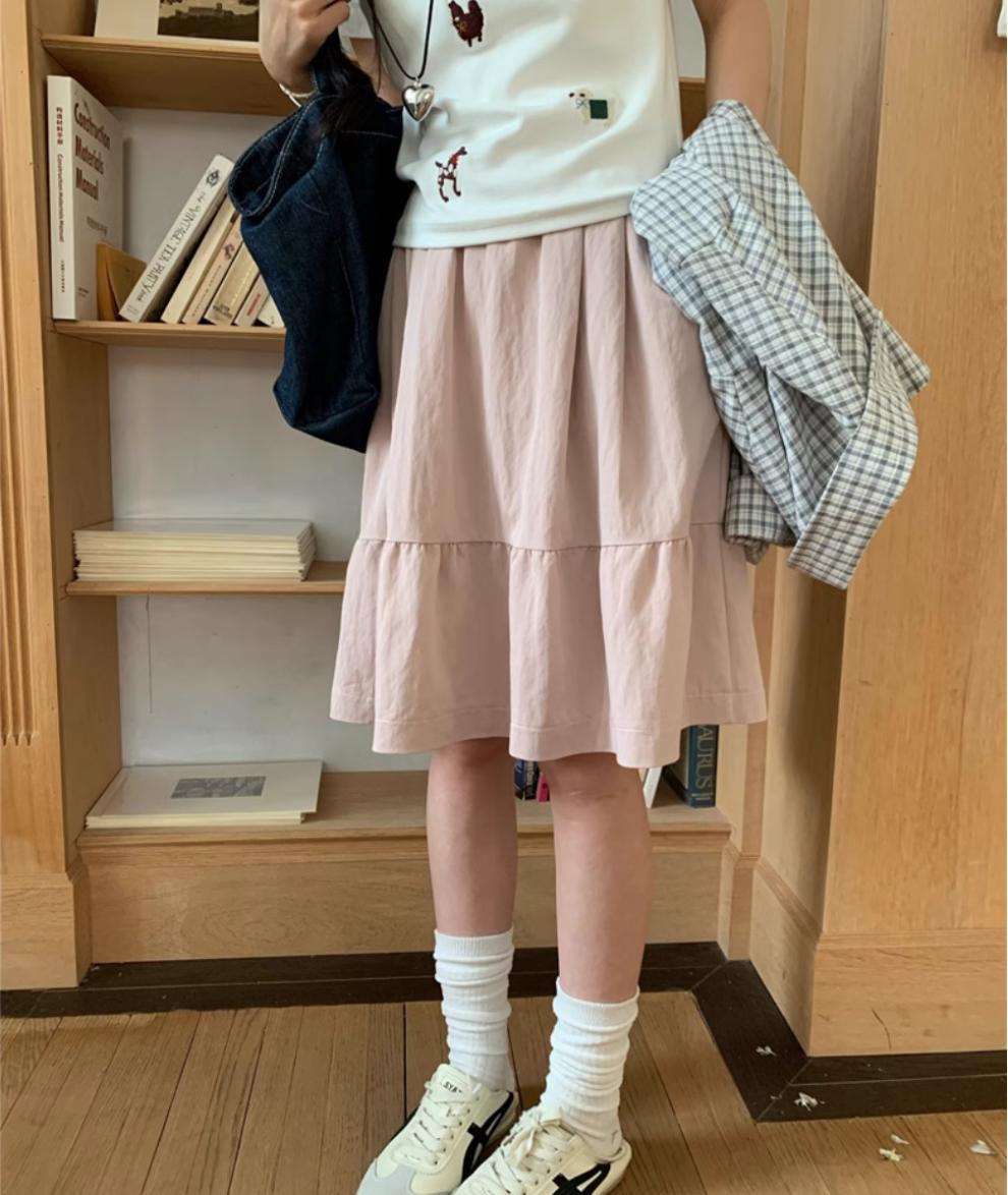 일본식 스커트 여성의 봄과 여름 2025 새로운 고급 센스 학업 스타일 스커트 높은 허리 우산 스커트 A-라인 스커트