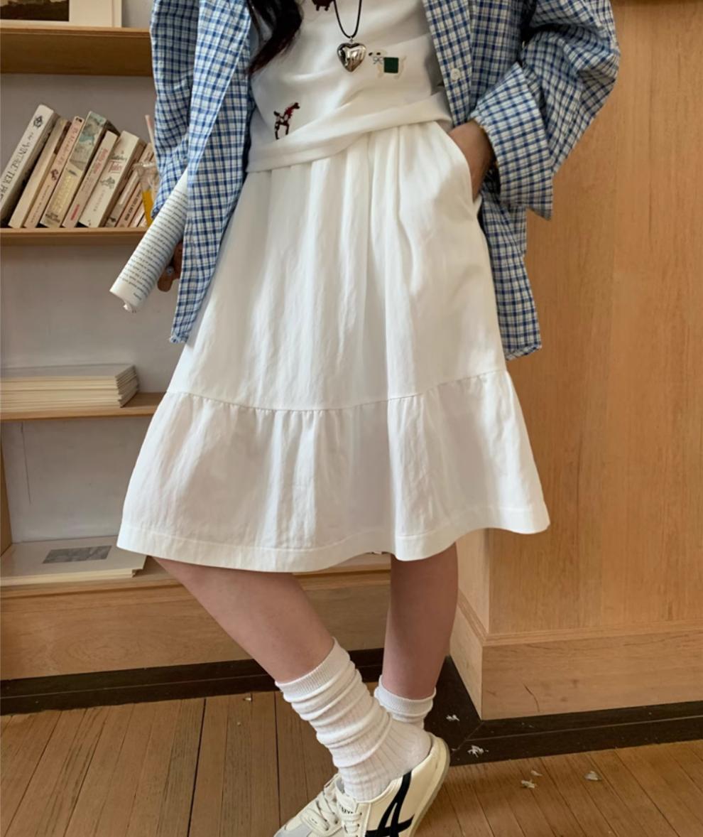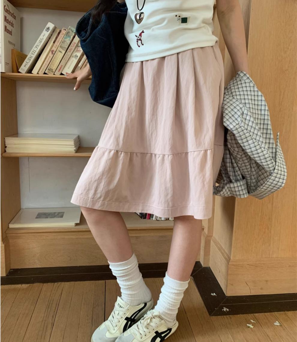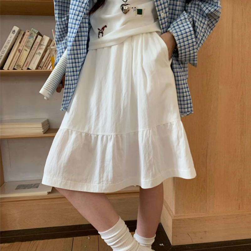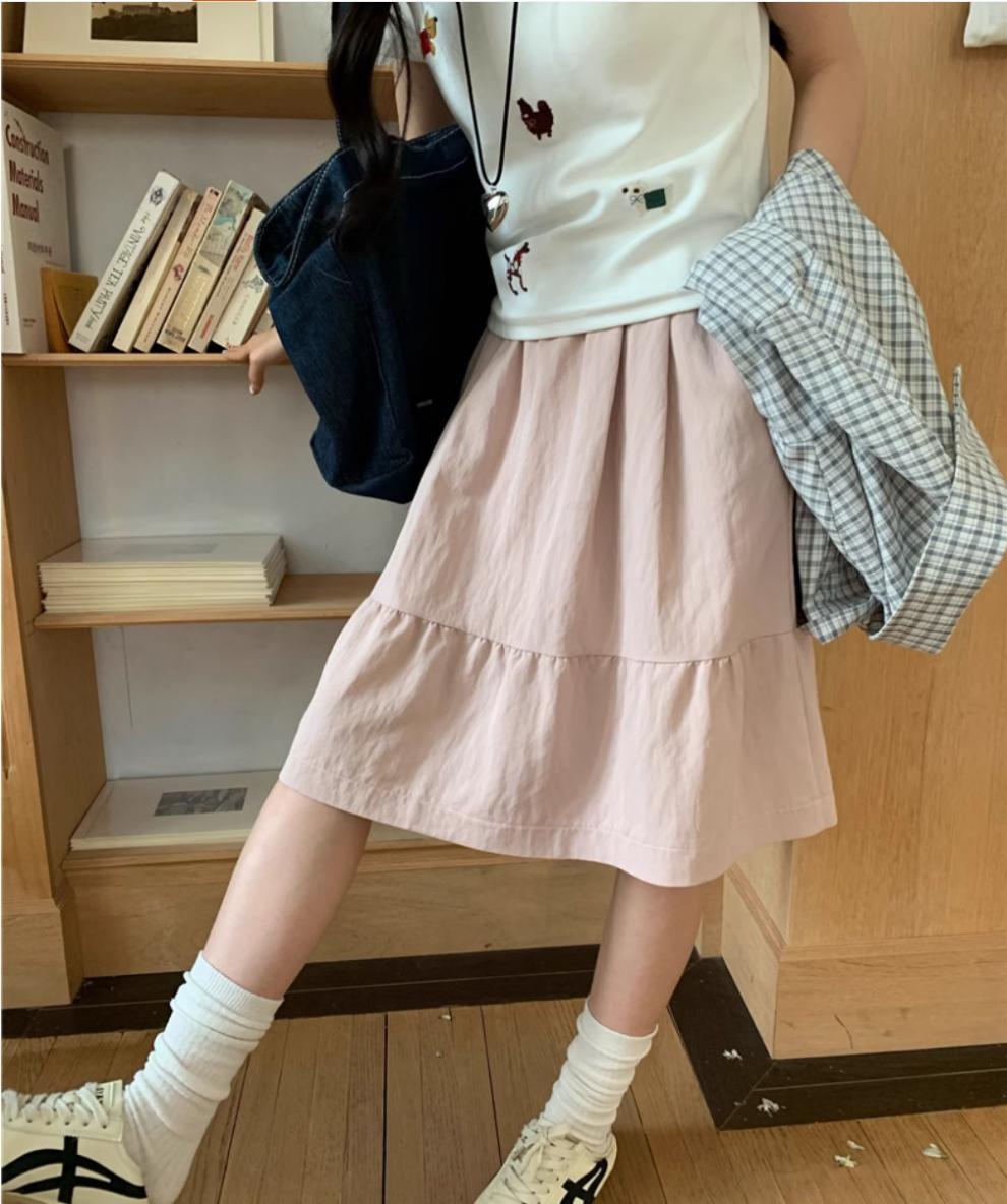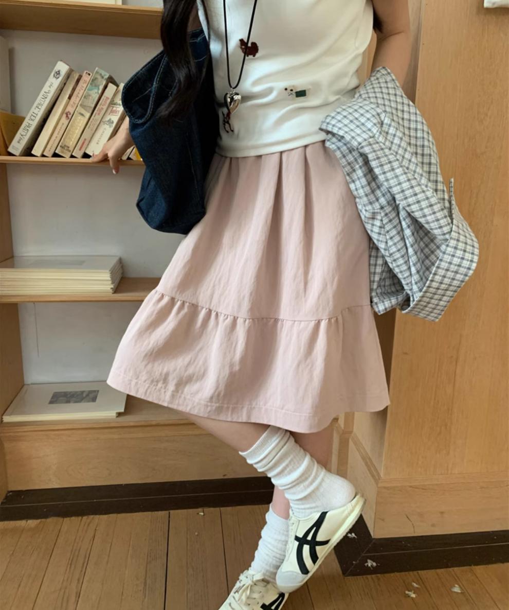 일본식 스커트 여성의 봄과 여름 2025 새로운 고급 센스 학업 스타일 스커트 높은 허리 우산 스커트 A-라인 스커트