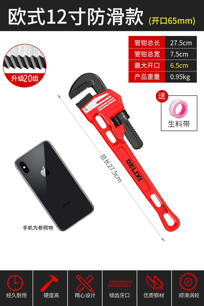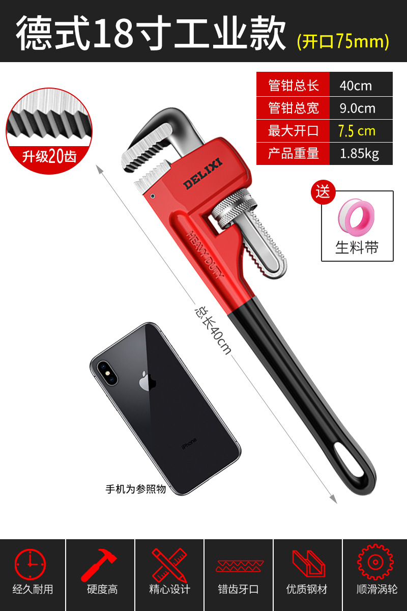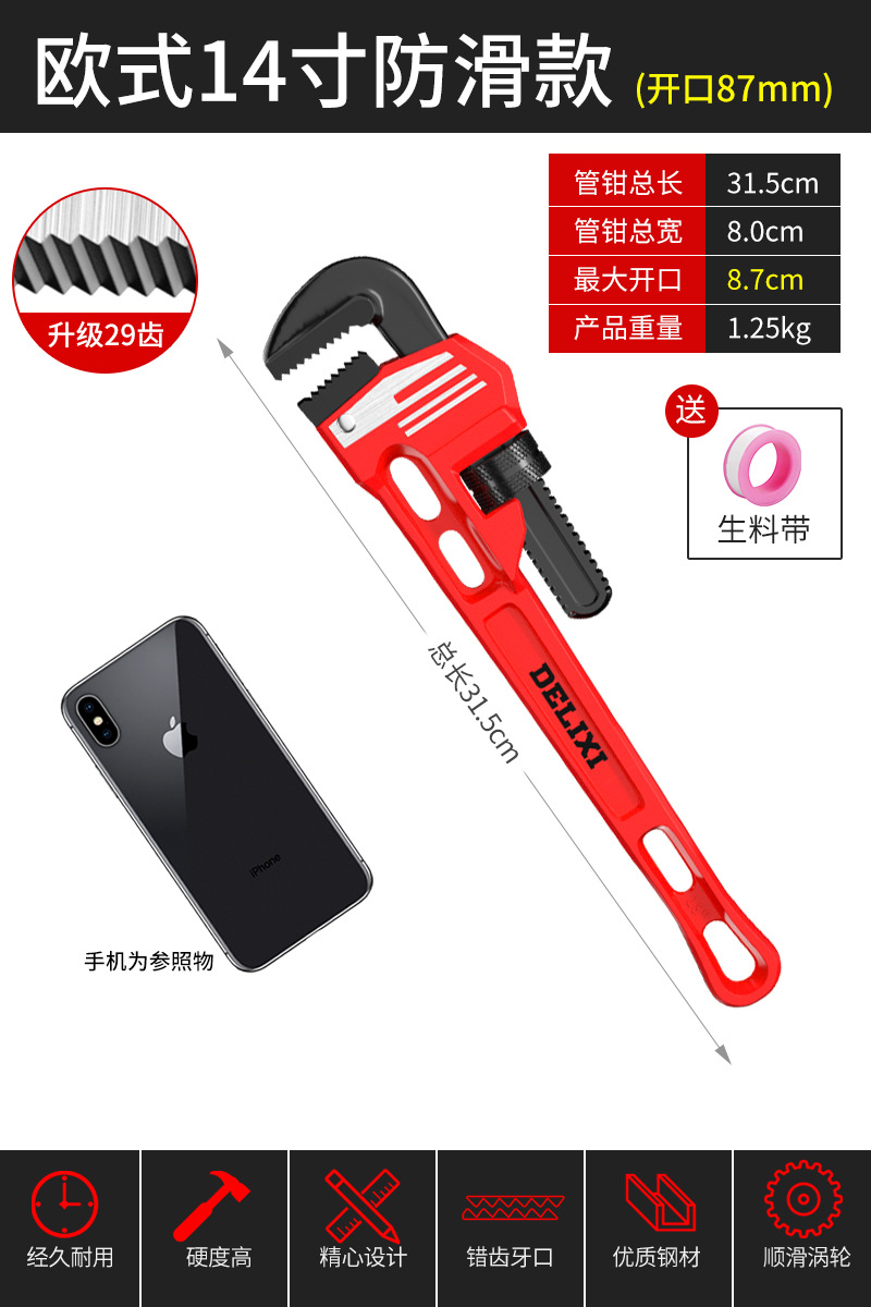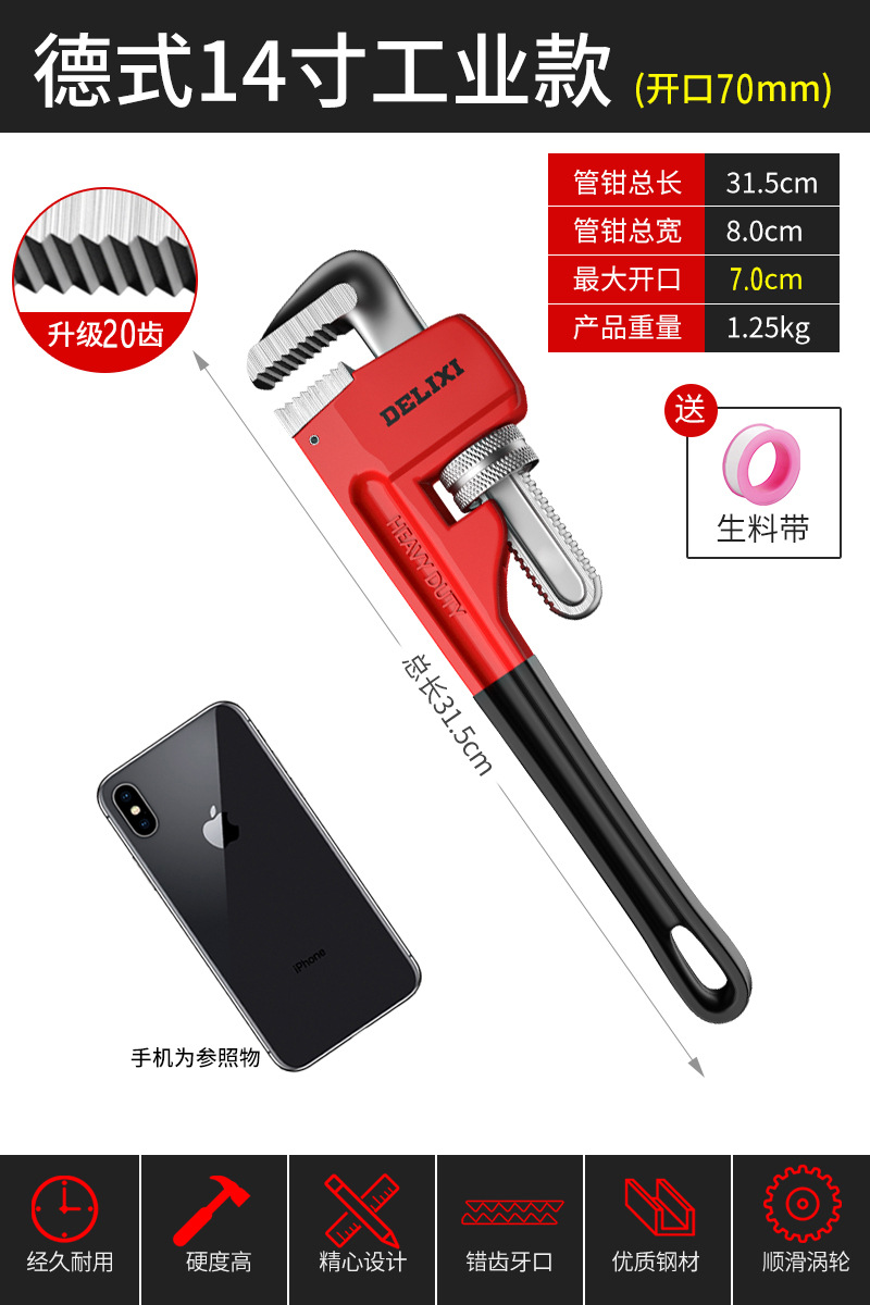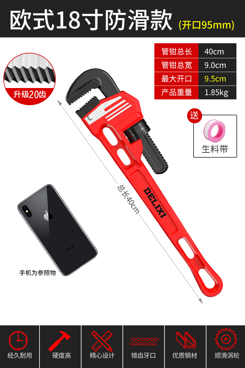 Delixi 파이프 집게 유니버설 파이프 집게 유니버설 목 통 퀵 파이프 집게 워터 파이프 작은 렌치