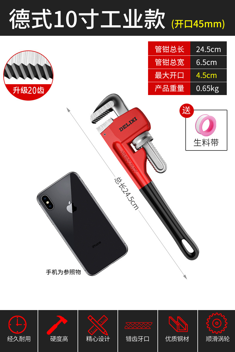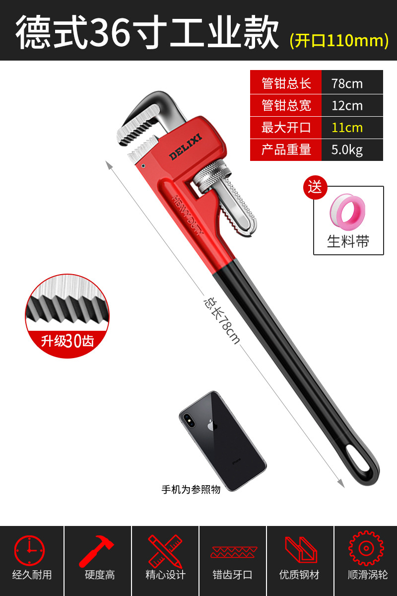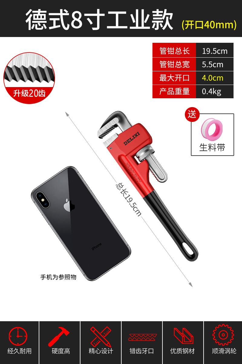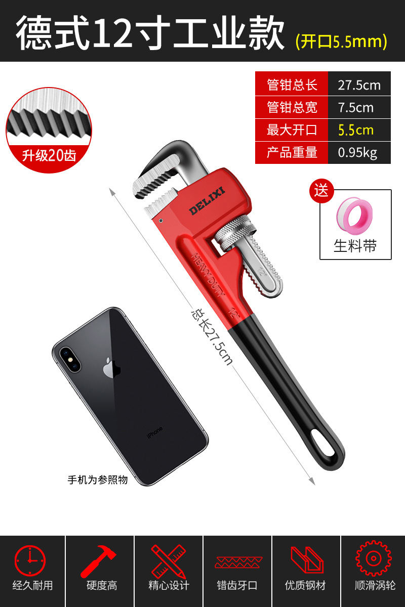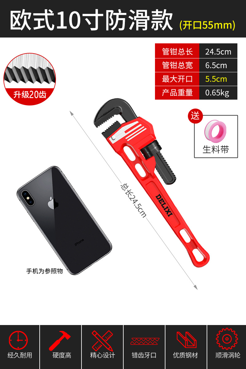 Delixi 파이프 집게 유니버설 파이프 집게 유니버설 목 통 퀵 파이프 집게 워터 파이프 작은 렌치
