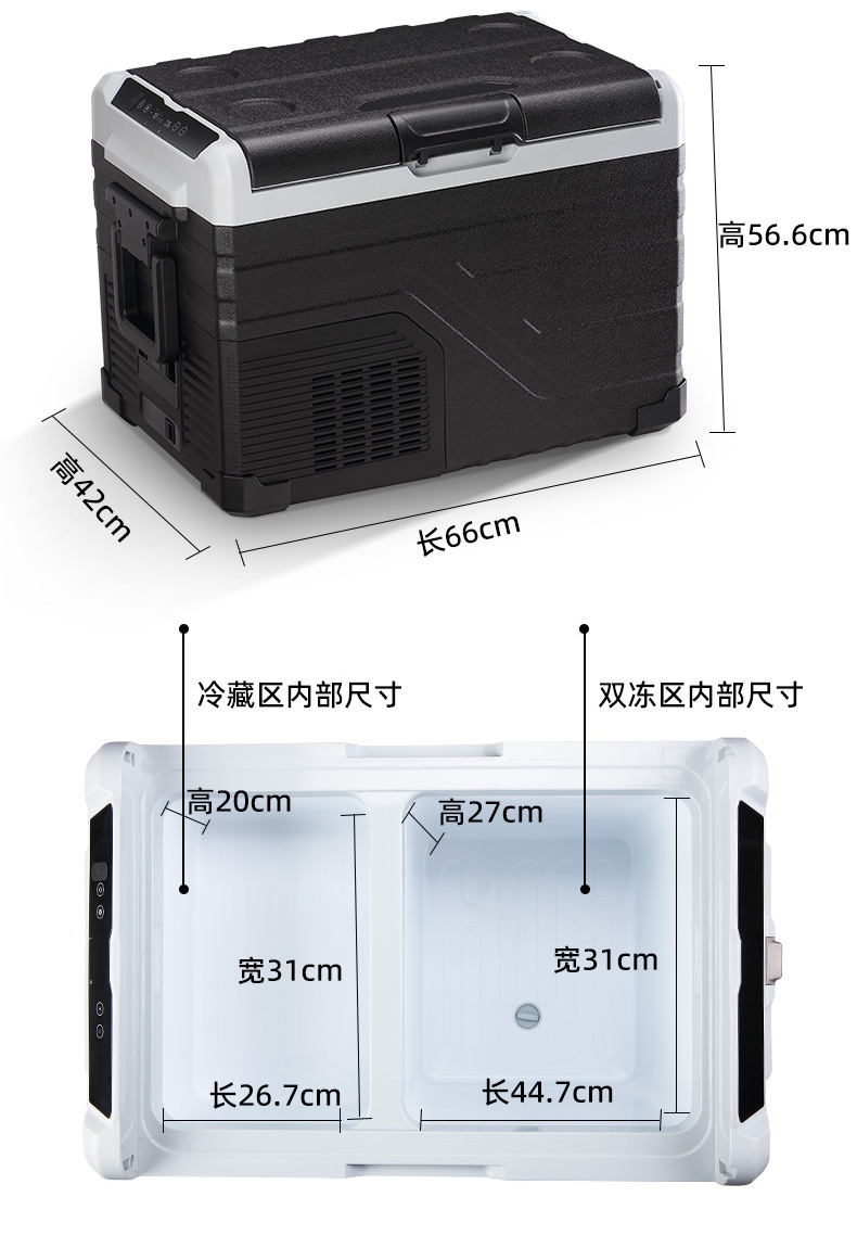 • 55L 이중 온도 및 이중 제어 [바퀴 포함] 차량 전용