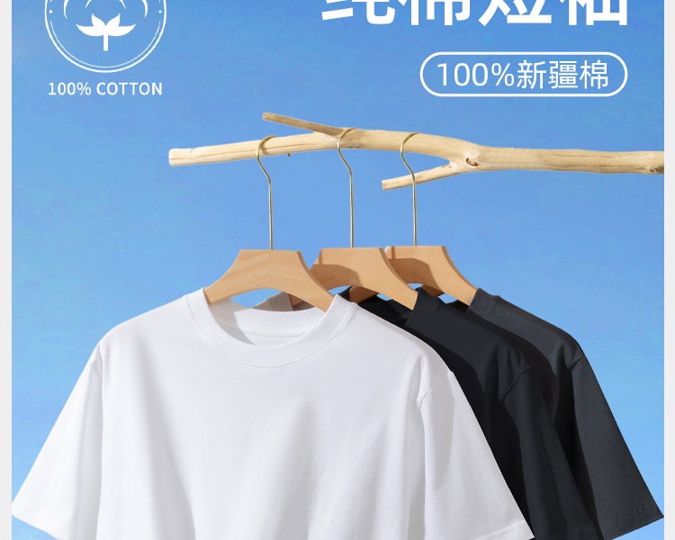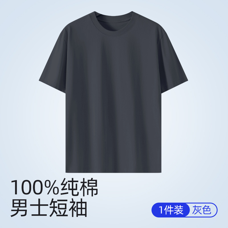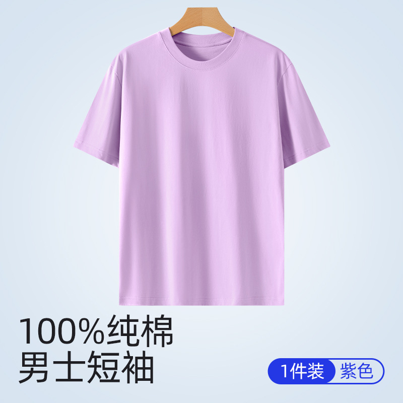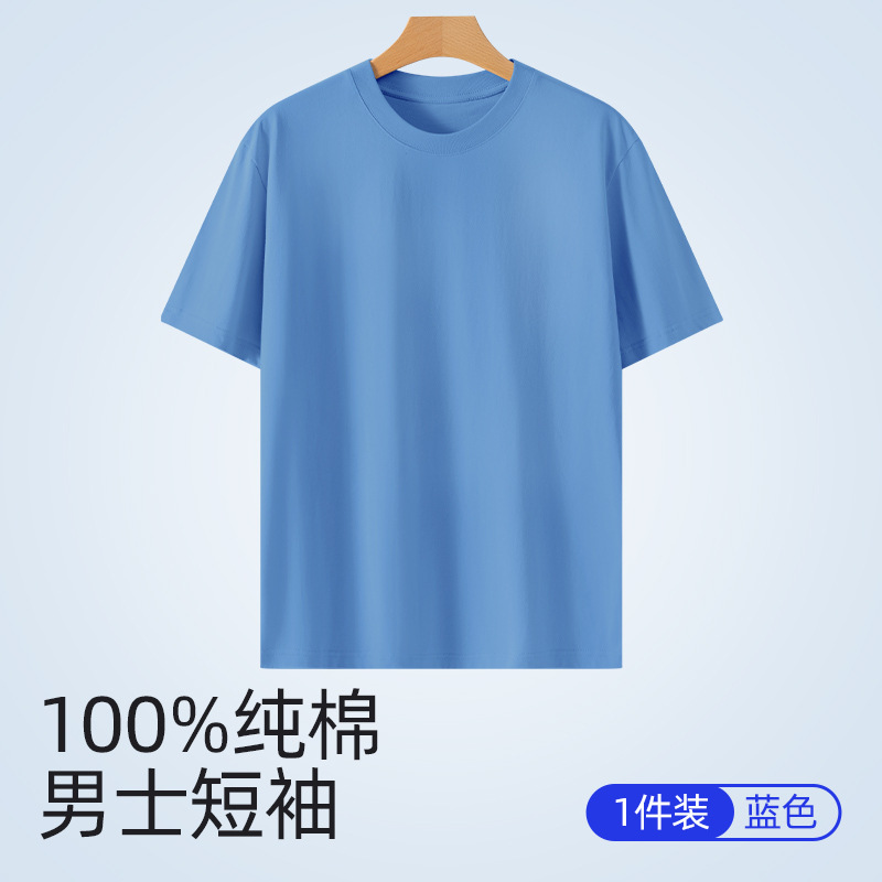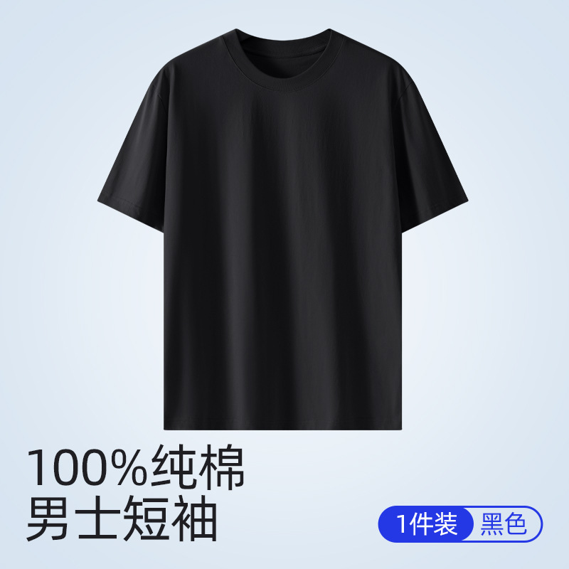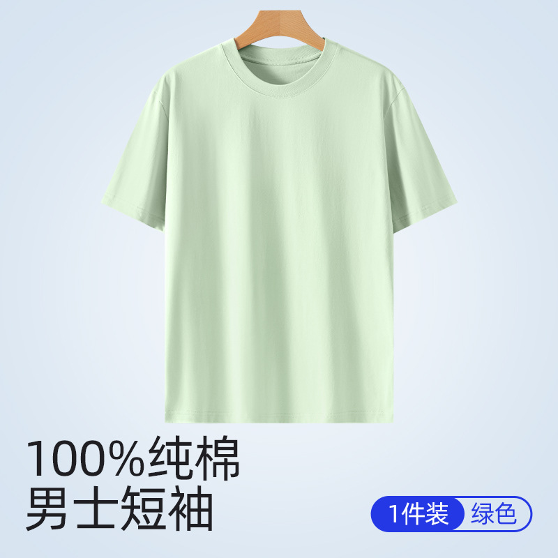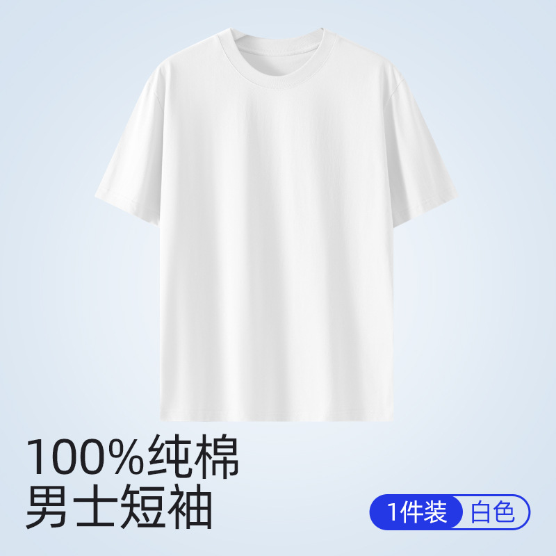 퓨어 코튼 화이트 크루 넥 느슨한 반팔 7A 중량의 퓨어 코튼 솔리드 티셔츠 캐주얼 Ins 스타일 남성용 여름 반소매 티셔츠스토어 가기