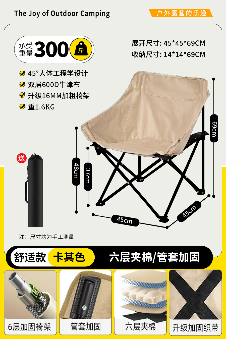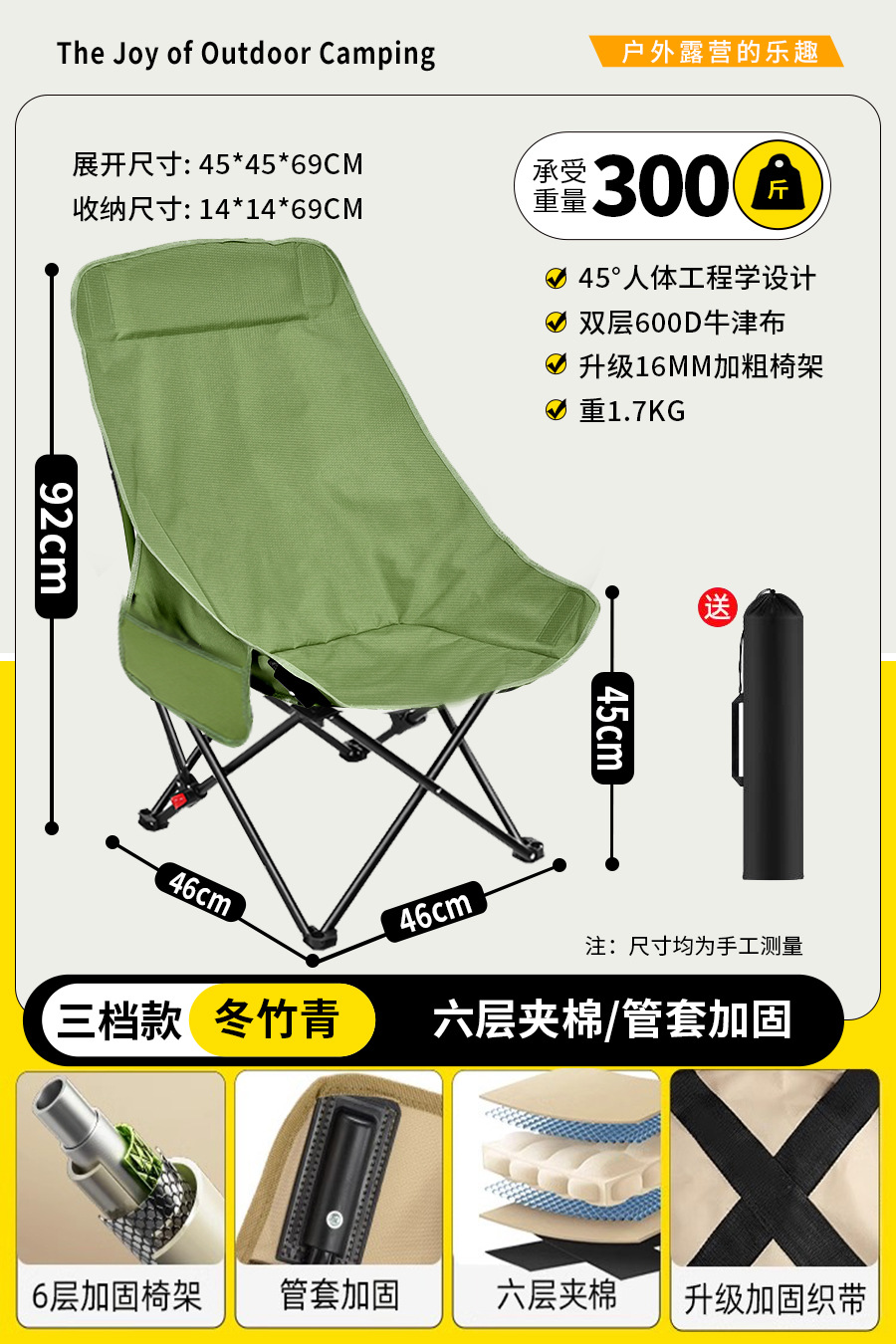 • 【하이백 문체어⭐카키】6겹의 퀼팅⭐파이프 슬리브 보강(수납 가방 포함)