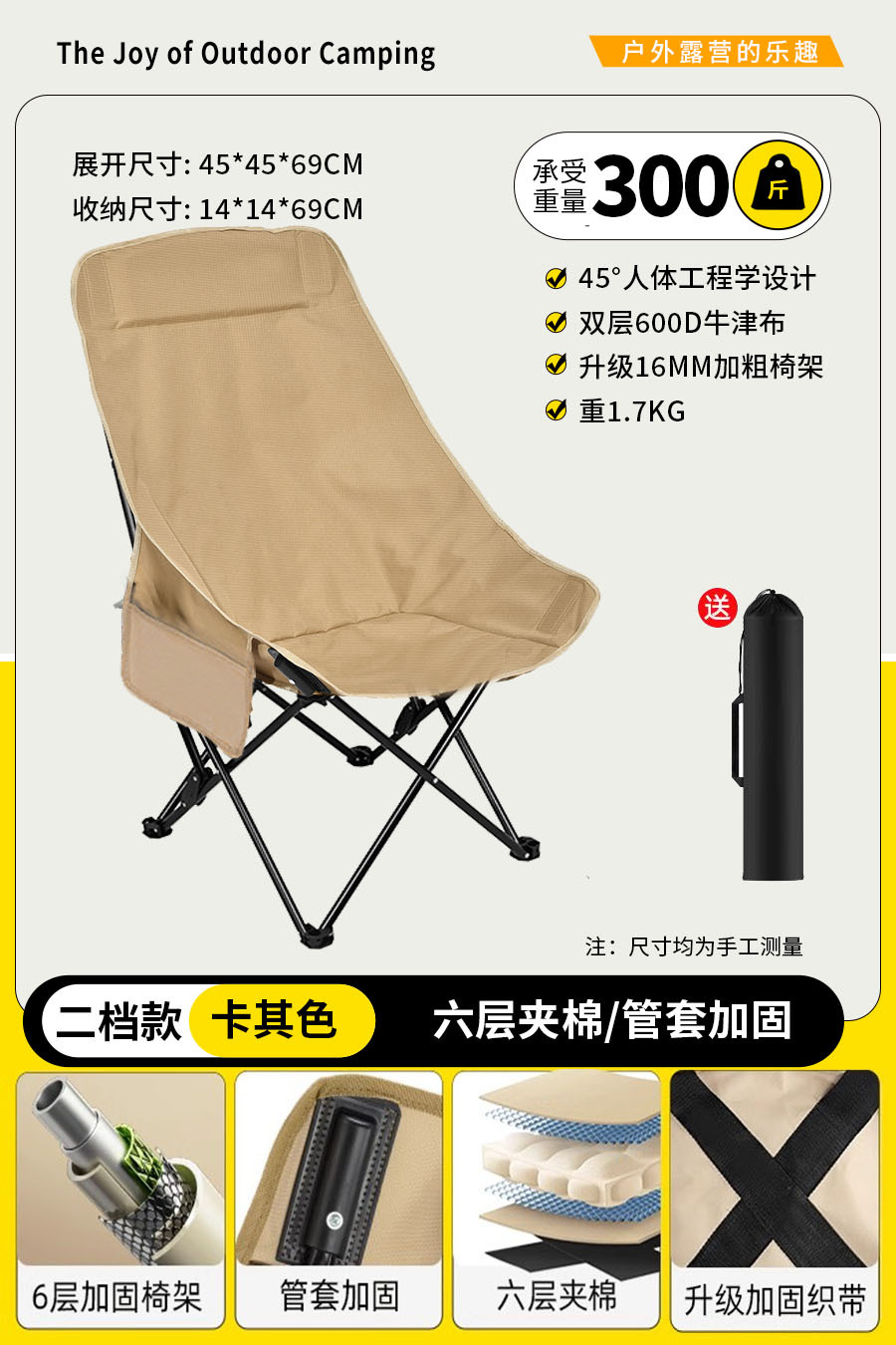 • [2단계 조절 가능한 하이백 문체어⭐카키】6겹의 퀼팅⭐파이프 슬리브 보강(수납 가방 포함)