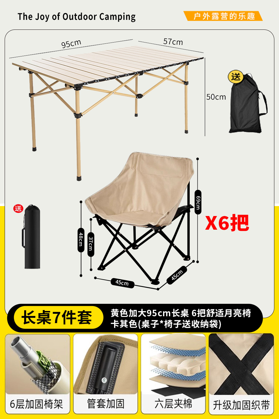 • [롱테이블 7종세트] 옐로우 95cm 롱테이블 + 문의자 6개⭐카키(테이블⭐의자에는 수납가방이 함께 제공됩니다)
