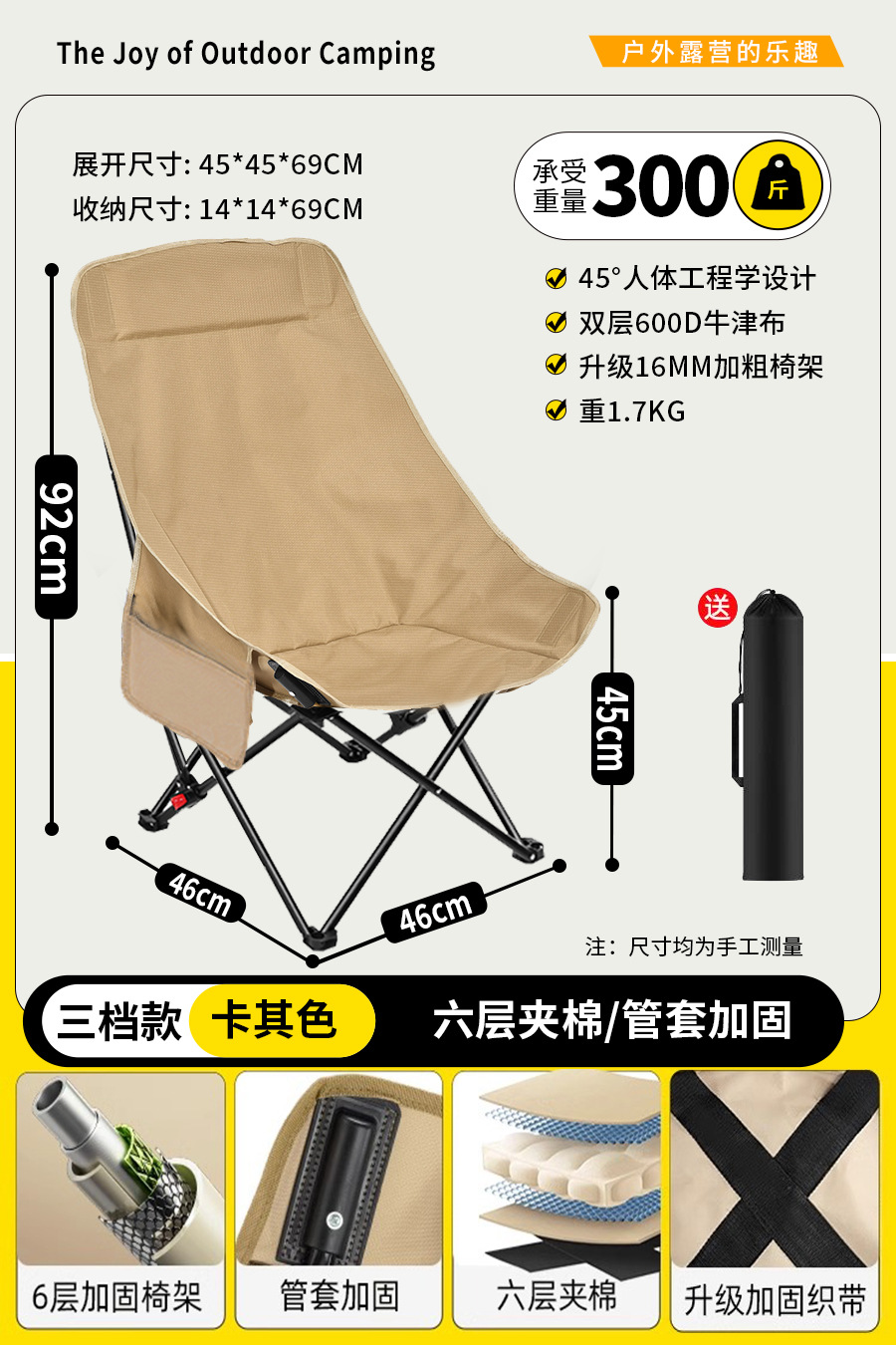 • [3단계 조절 가능한 하이백 문체어⭐카키】6겹의 퀼팅⭐파이프 슬리브 보강(수납 가방 포함)
