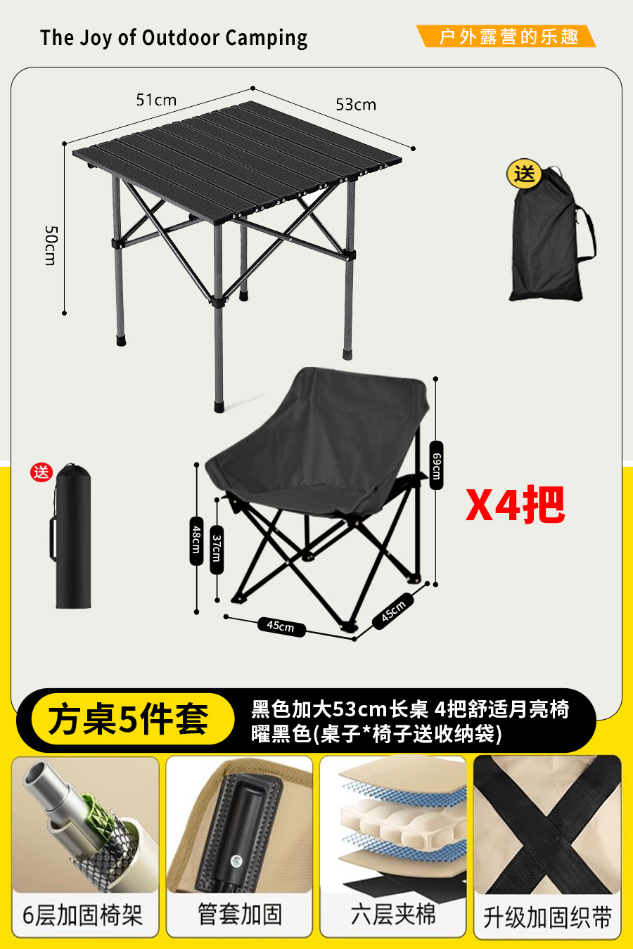 • [사각테이블 5종세트] 블랙 53cm 사각테이블 + 달의자 4개⭐흑요석(테이블⭐의자에는 수납가방이 함께 제공됩니다)