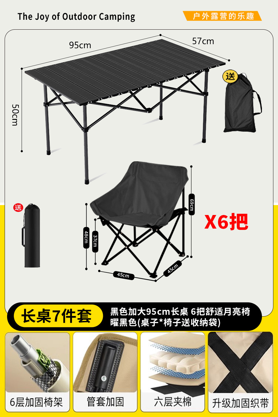 • [롱테이블 7종세트] 블랙 95cm 롱테이블 + 달의자 6개⭐흑요석(테이블⭐의자에는 수납가방이 함께 제공됩니다)