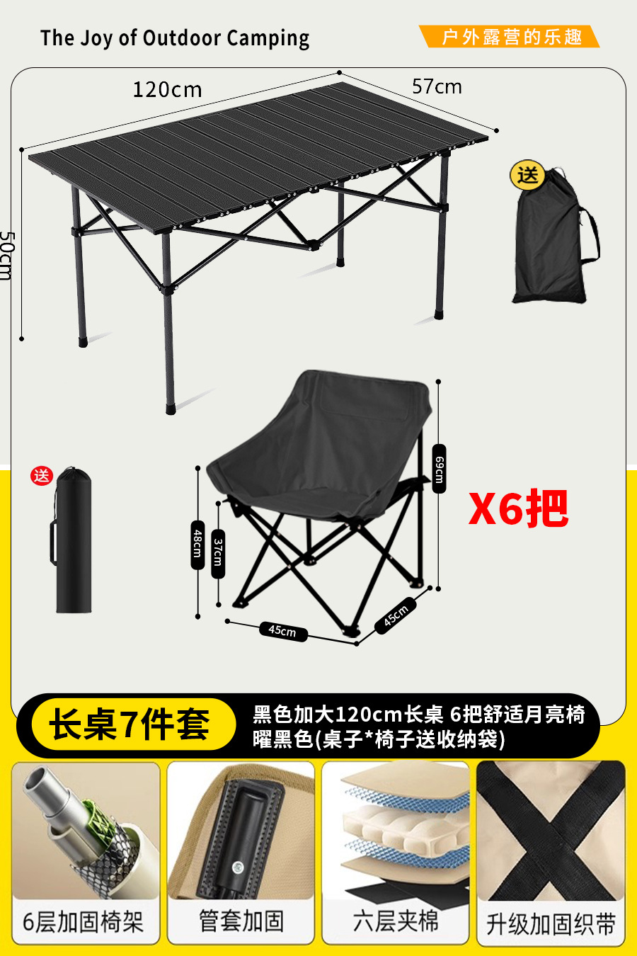 • [롱테이블 7종세트] 블랙 확대 120cm 롱테이블 + 달의자 6개⭐흑요석(테이블⭐의자에는 수납가방이 함께 제공됩니다)