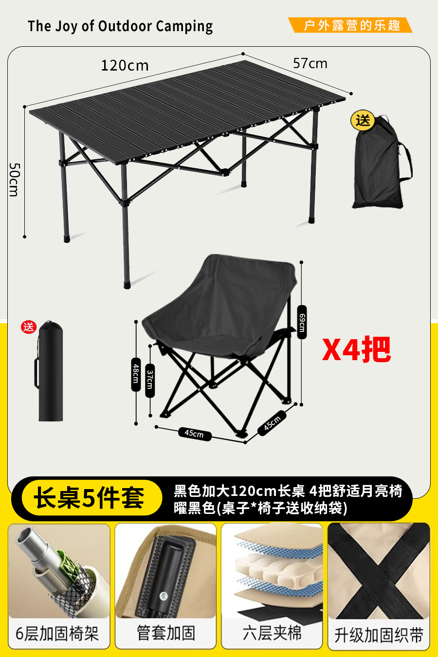 • [롱테이블 5종세트] 블랙 확대 120cm 롱테이블 + 달의자 4개⭐흑요석(테이블⭐의자에는 수납가방이 함께 제공됩니다)