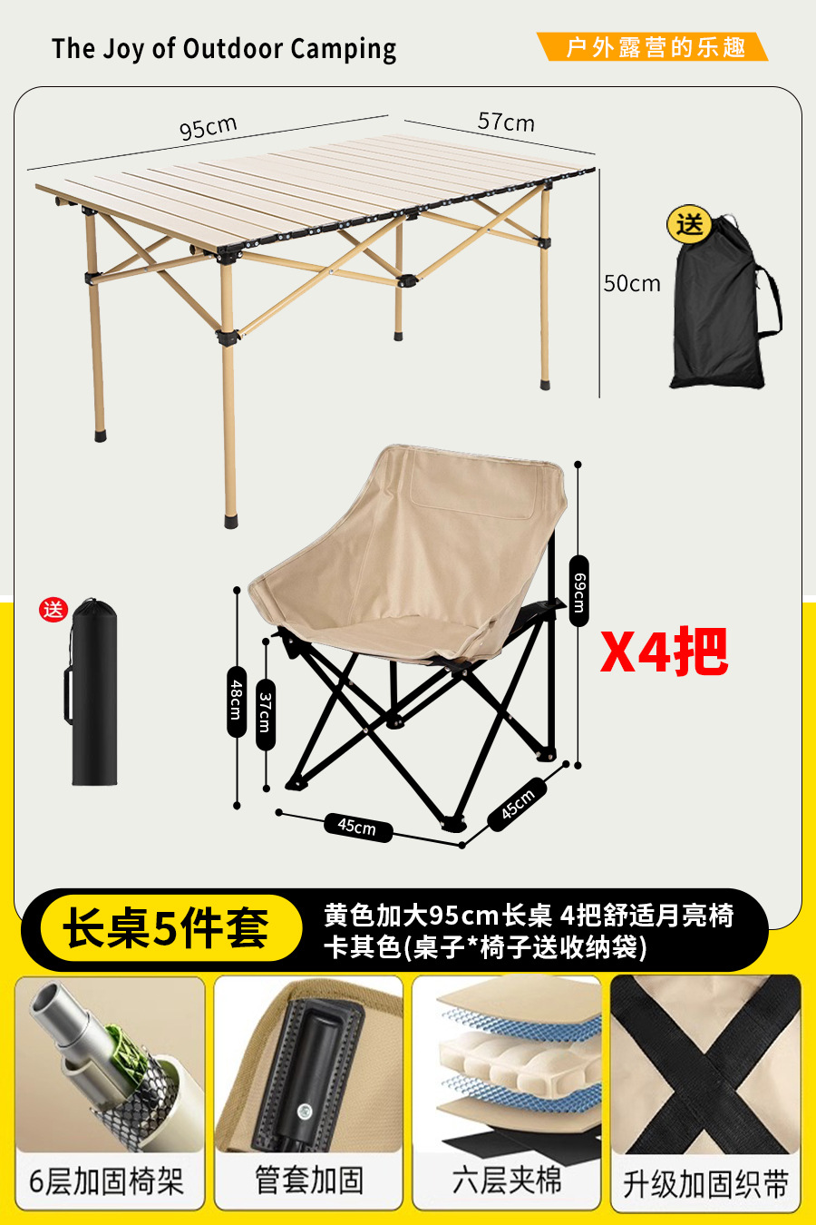 • [롱테이블 5종세트] 옐로우 95cm 롱테이블 + 문체어 4개⭐카키(테이블⭐의자에는 수납가방이 함께 제공됩니다)