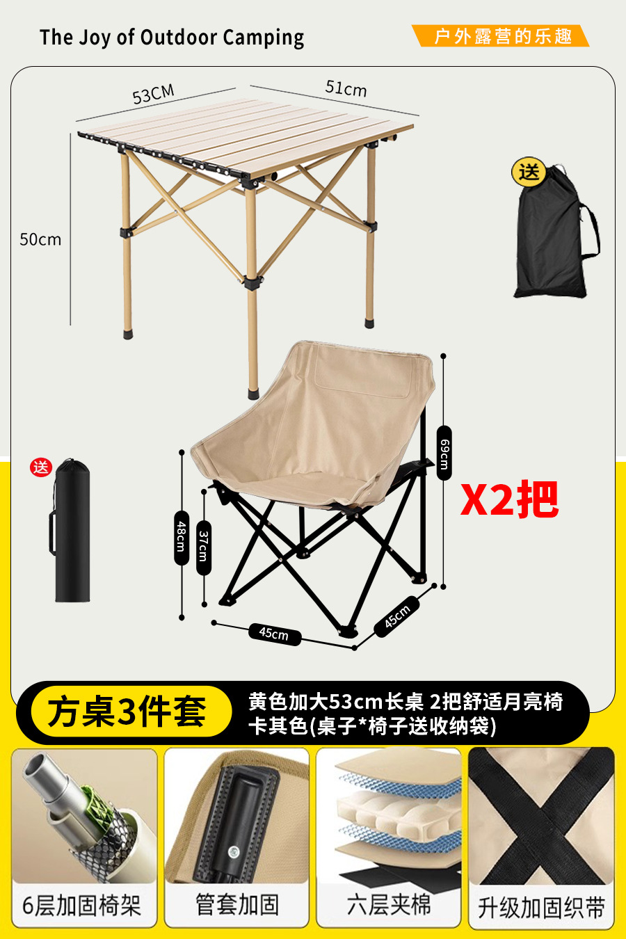 • [사각테이블 3종세트] 노란색 53cm 사각테이블 + 달의자 2개 ⭐ 카키(테이블 ⭐ 의자에는 수납가방이 함께 제공됩니다)