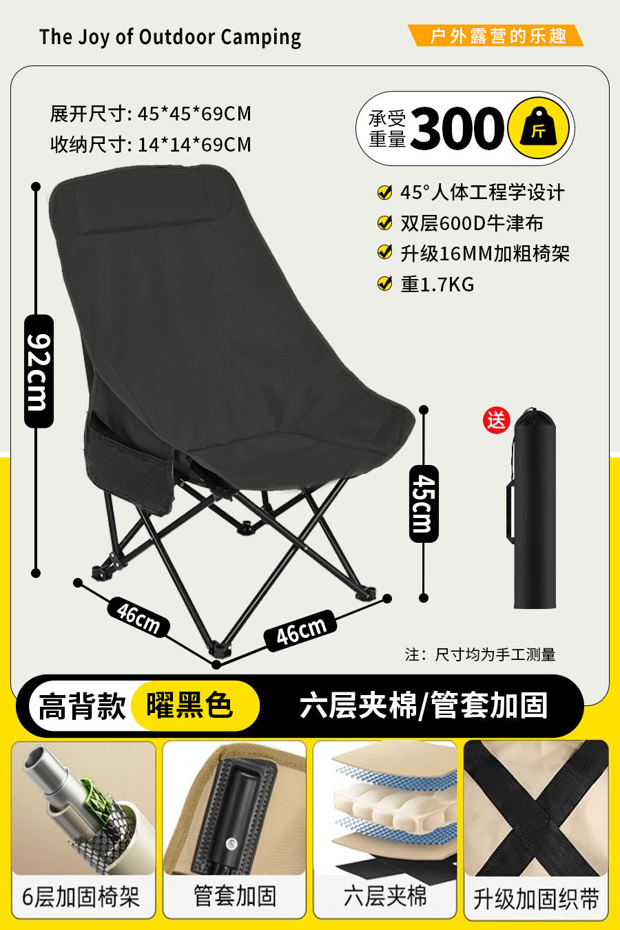 • 【하이백 문체어⭐흑요석 블랙】6겹의 퀼팅⭐파이프 슬리브 보강(수납 가방 포함)