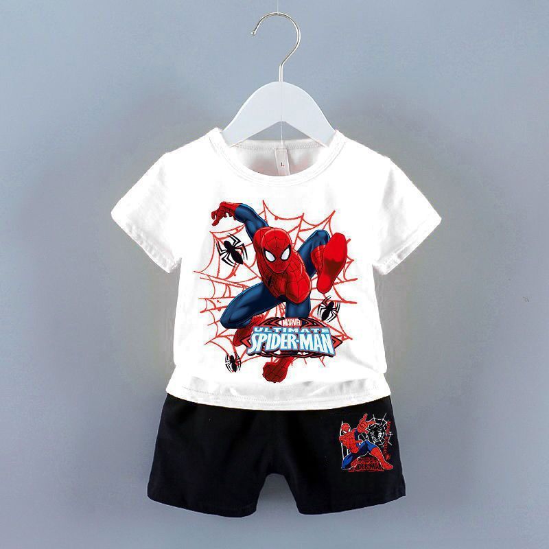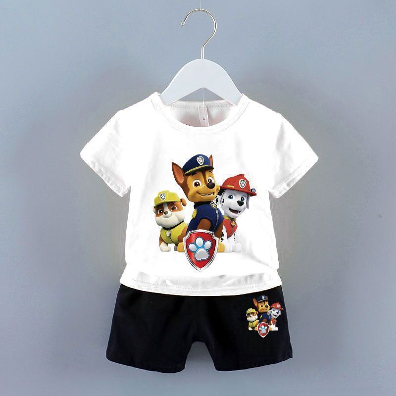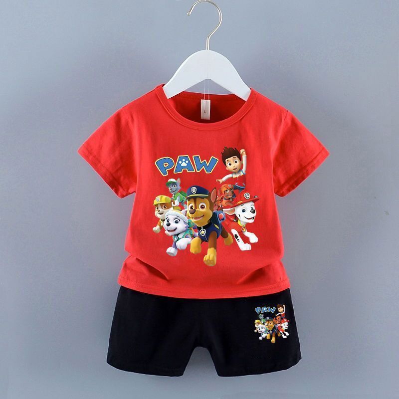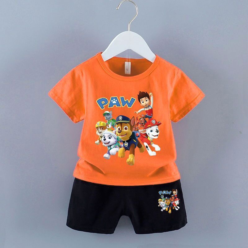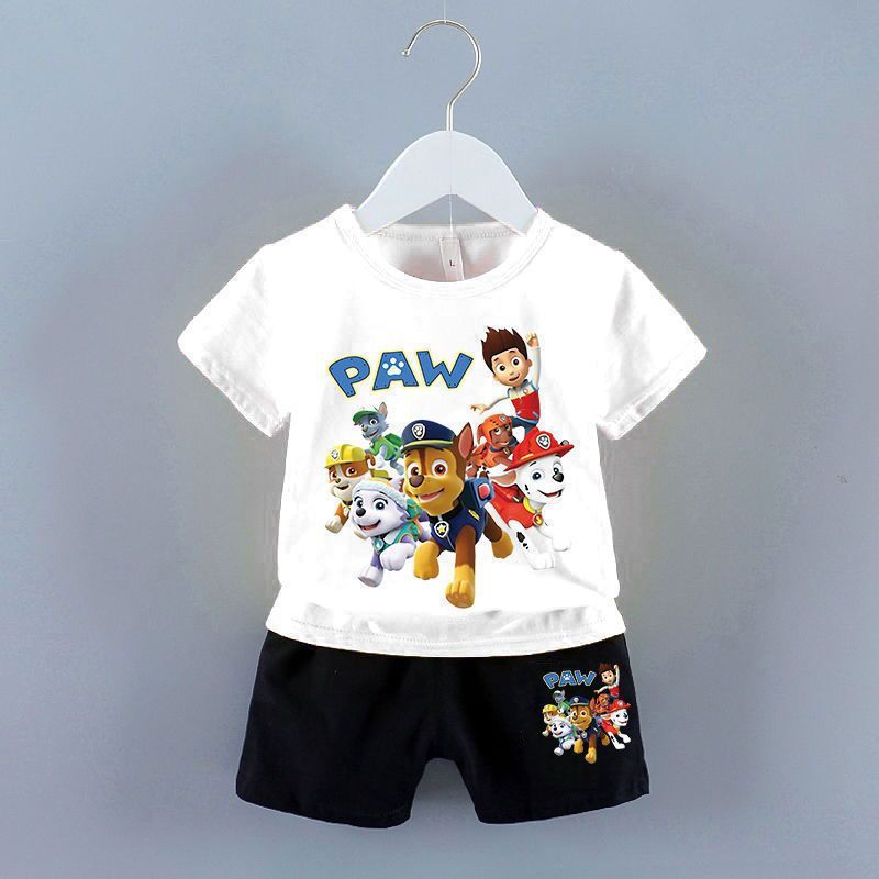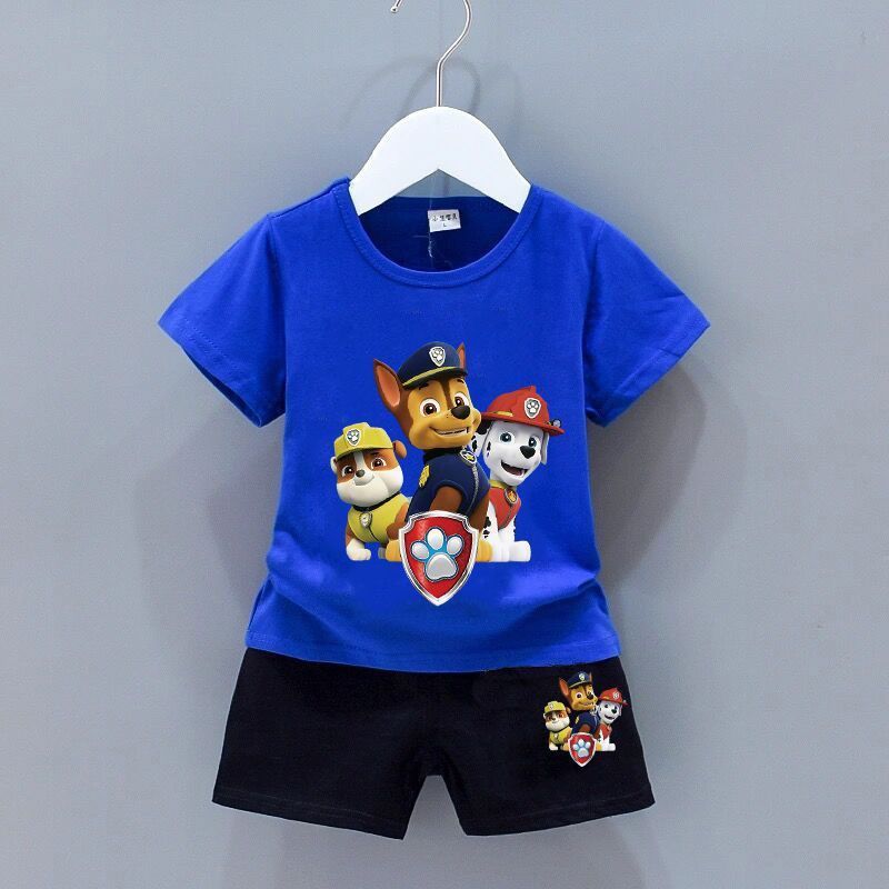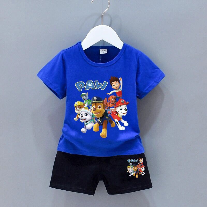 왕왕 팀 어린이 짧은 소매 세트 여름 새로운 트렌드 큰 어린이 세트 만화 프린트 티셔츠 두 조각스토어 가기