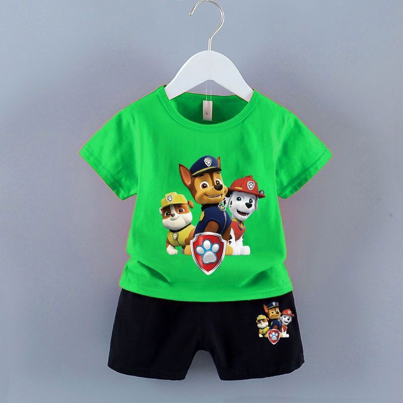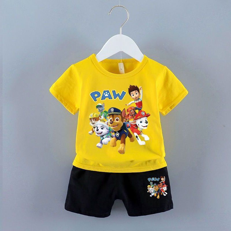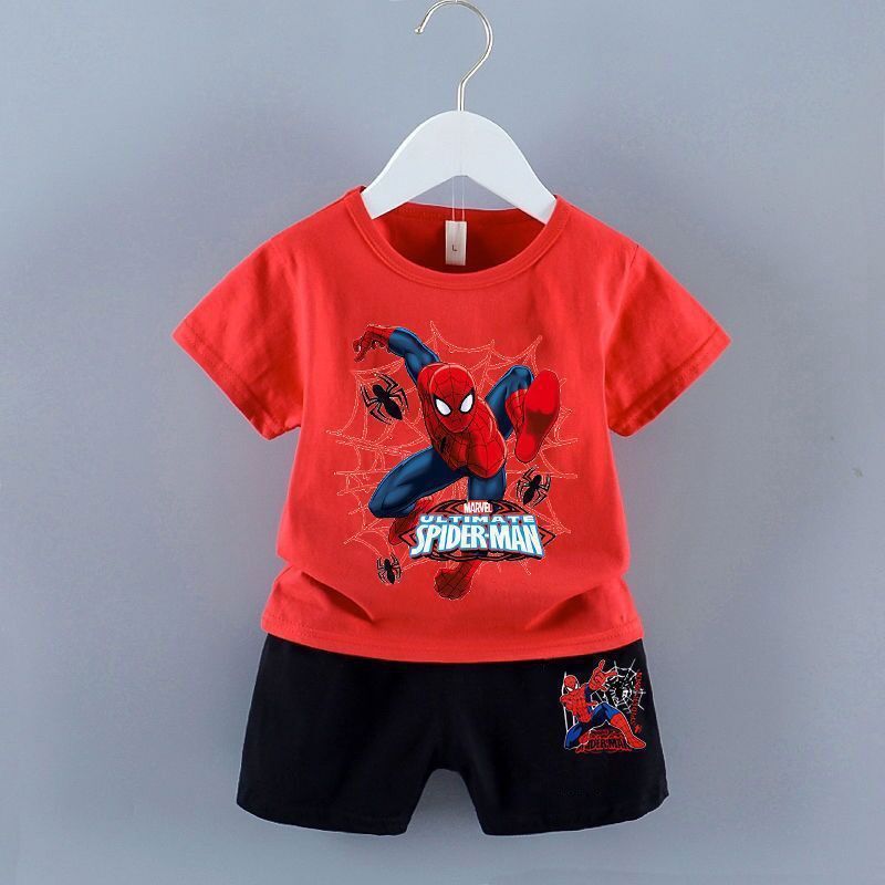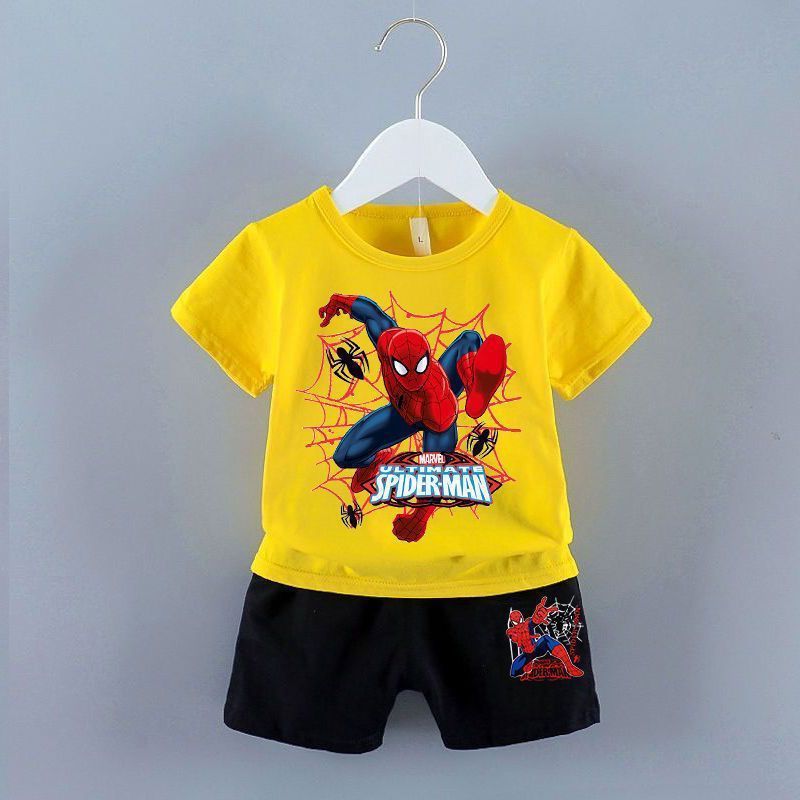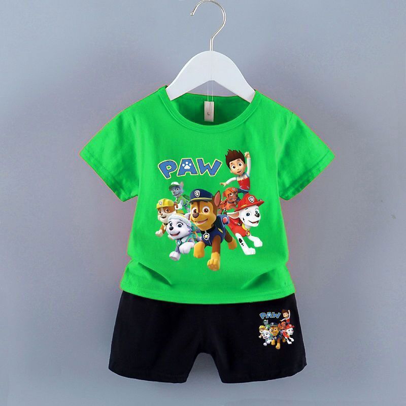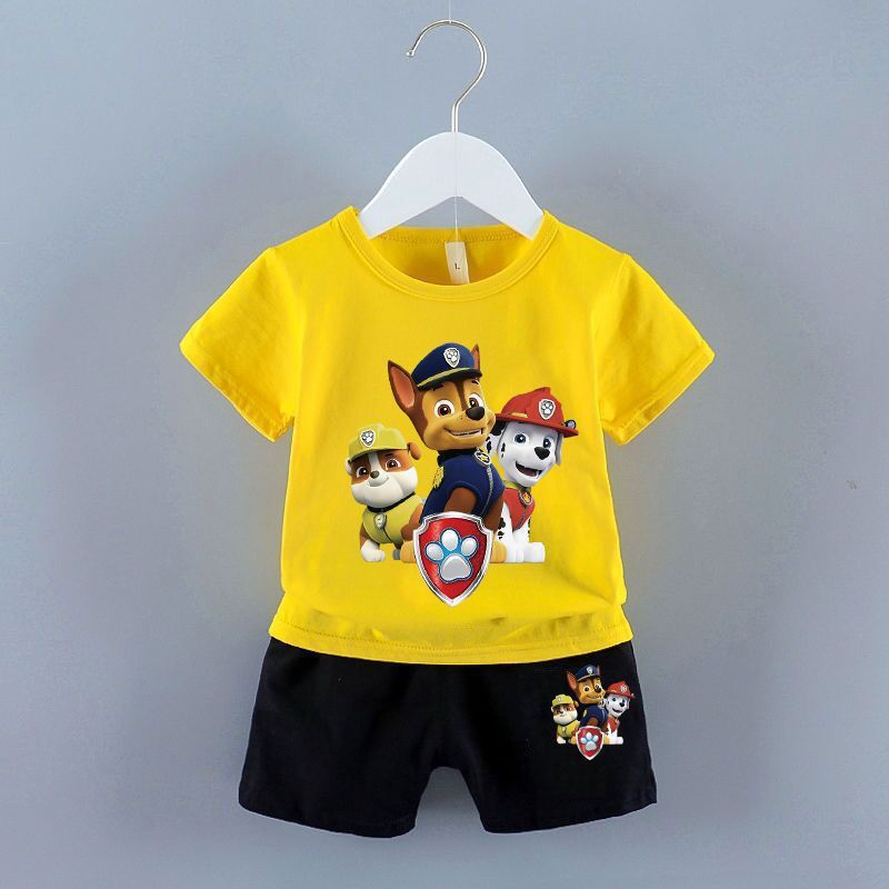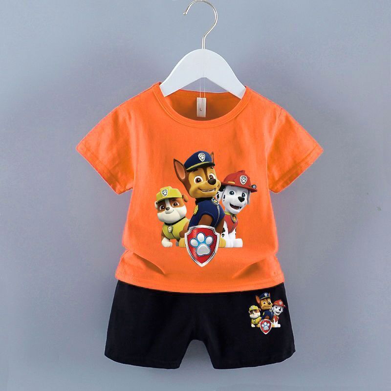 왕왕 팀 어린이 짧은 소매 세트 여름 새로운 트렌드 큰 어린이 세트 만화 프린트 티셔츠 두 조각스토어 가기